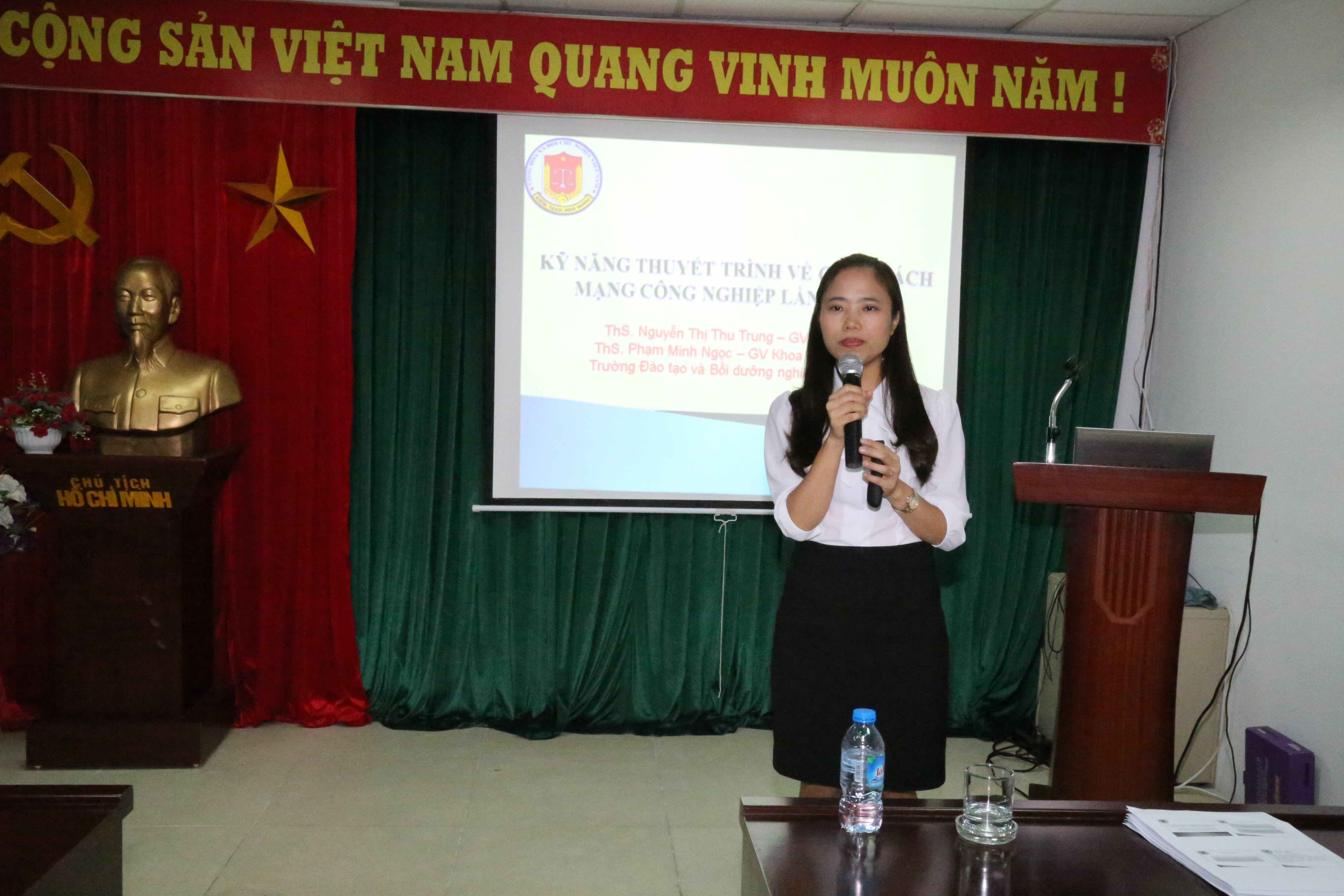 Buổi tập huấn do hai đoàn viên - giảng viên trẻ của Trường là Ths. Nguyễn Thu Trung và Ths. Phạm Thị Minh Ngọc truyền đạt và chủ trì. Trong thời gian 01 ngày làm việc, các đoàn viên đã tiếp thu được những kiến thức rất thiết thực về kỹ năng thuyết trình cũng như có cơ hội  trao đổi, thực hành thuyết trình và thảo luận một cách sôi nổi về chủ đề Cuộc cách mạng KHCN 4.0 và những thách thức đặt ra với các hoạt động của Trường Đào tạo & Bồi dưỡng nghiệp vụ Kiểm toán.