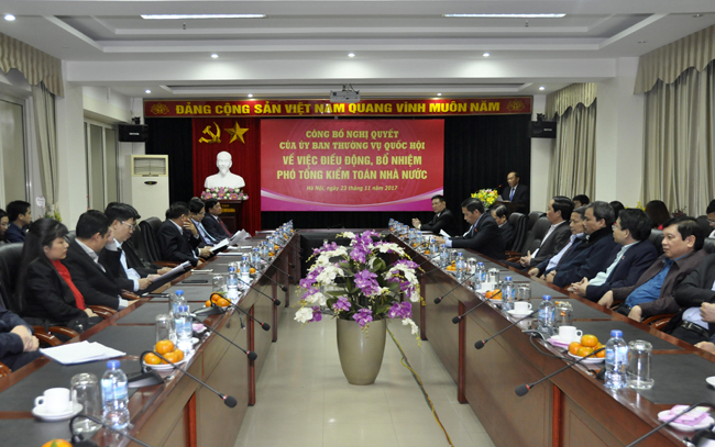 Tại buổi Lễ, Phó Tổng Kiểm toán nhà nước Đoàn Xuân Tiên đã công bố Nghị quyết của UBTVQH về việc điều động, bổ nhiệm Phó Tổng Kiểm toán nhà nước đối với đồng chí Đặng Thế Vinh.