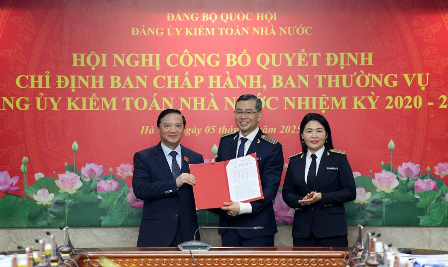 Phó Chủ tịch Quốc hội, Phó Bí thư Thường trực Đảng uỷ Quốc hội Nguyễn Khắc Định và Trưởng Ban Tổ chức Đảng ủy Quốc hội Nguyễn Thanh Hải với Ban Thường vụ Đảng ủy Kiểm toán nhà nước nhiệm kỳ 2020-2025 Thực hiện chủ trương lớn của Đảng, Nhà nước, với mục tiêu tinh gọn tổ chức bộ máy theo Nghị quyết số 18-NQ/TW của Ban Chấp hành Trung ương, ngày 24/01/2025 Bộ Chính trị quyết định thành lập Đảng bộ Quốc hội thuộc Ban Chấp hành Trung ương Đảng gồm 11 tổ chức đảng trực thuộc, trong đó có Đảng bộ Kiểm toán nhà nước. Đồng chí Tổng Kiểm toán nhà nước Ngô Văn Tuấn được chỉ định tham gia Ban Thường vụ Đảng ủy Quốc hội và được phân công đảm nhiệm chức vụ Chủ nhiệm Ủy ban Kiểm tra của Đảng ủy Quốc hội; đồng chí Phó Tổng Kiểm toán nhà nước Hà Thị Mỹ Dung được bổ nhiệm giữ chức Ủy viên Ban Chấp hành Đảng bộ Quốc hội.