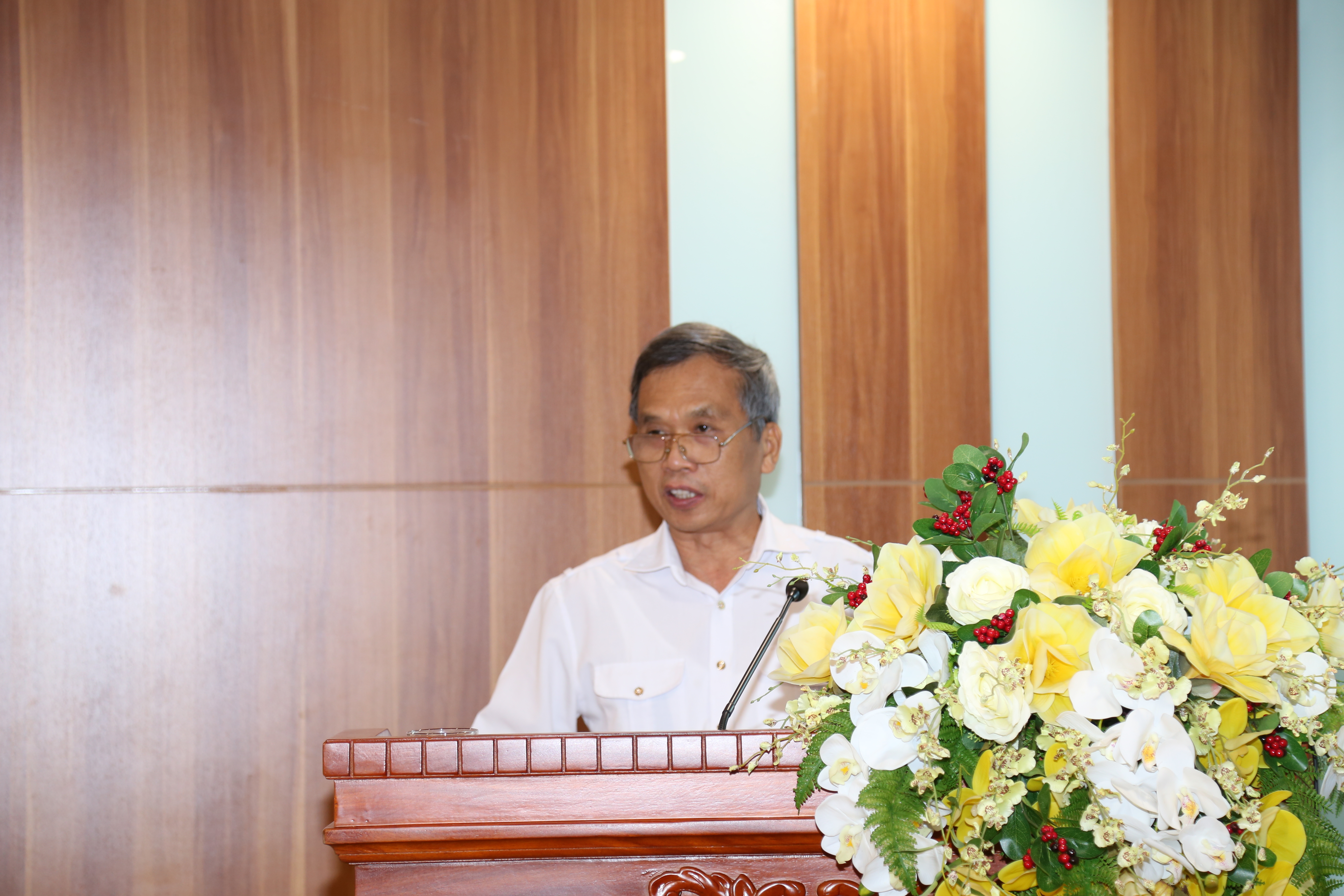 Nhân dịp này, thay mặt Lãnh đạo và viên chức của Trường, Phó Giám đốc Trường Nguyễn Huy Hoàng ghi nhận những đóng góp của PGS.TS Nguyễn Đình Hòa đối với Trường trong những năm vừa qua và chúc PGS.TS Nguyễn Đình Hòa luôn có sức khỏe và nhiều niềm vui và luôn quan tâm đến hoạt động của Trường trong thời gian tới.