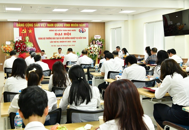 (khoahockiemtoan.vn) - Sáng 05/5, Đảng bộ Trường Đào tạo và Bồi dưỡng nghiệp vụ kiểm toán (Trường ĐT&BDNVKT) tổ chức Đại hội lần thứ VII nhiệm kỳ 2025-2030. Đồng chí Bùi Quốc Dũng - Ủy viên Ban Thường vụ Đảng uỷ, Phó Tổng Kiểm toán nhà nước dự và chỉ đạo Đại hội.