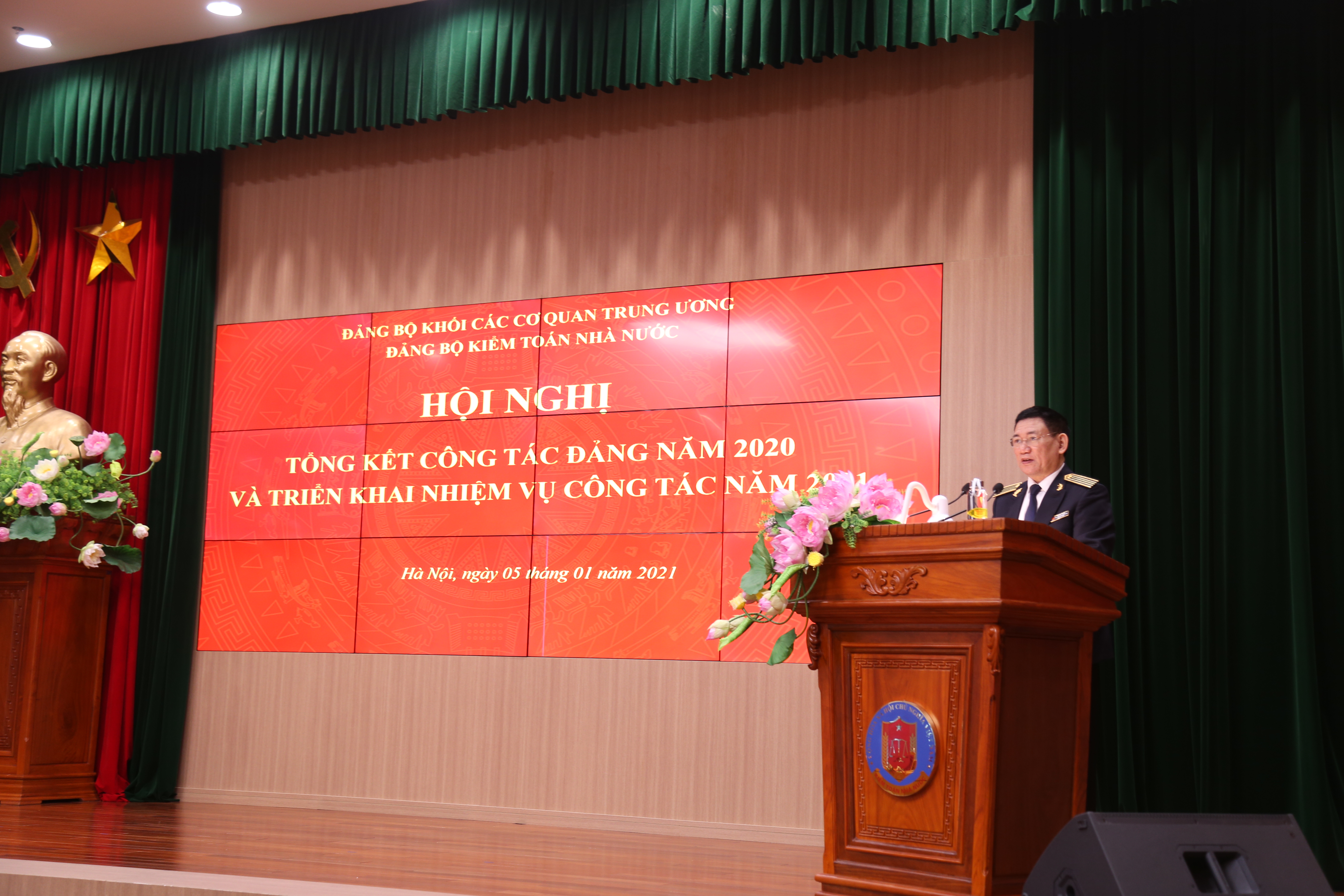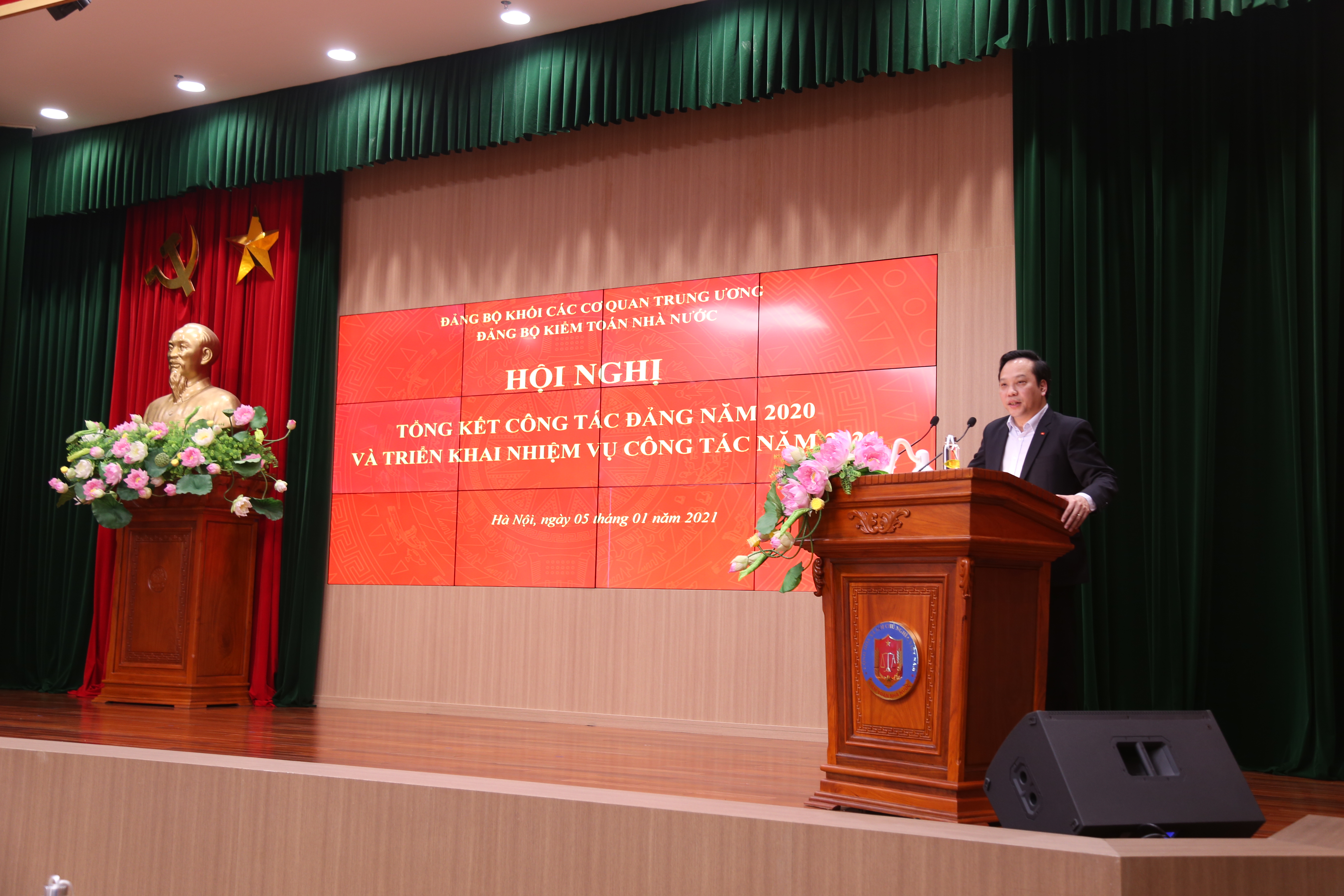 Phát biểu chỉ đạo Hội nghị, đồng chí Đỗ Việt Hà - Phó Bí thư Đảng ủy Khối biểu dương những thành tích Đảng bộ KTNN đã đạt được trong năm 2020; trong năm 2021, đồng chí Đỗ Việt Hà yêu cầu Đảng ủy KTNN cần tiếp tục quan tâm, tạo điều kiện phát huy tinh thần chủ động, sáng tạo gương mẫu của đảng viên, phối hợp với BCS đảng lãnh đạo thực hiện tốt nhiệm vụ chính trị của Ngành. Nhấn mạnh hoạt động của KTNN thuộc lĩnh vực nhạy cảm, nhiều thách thức, Phó Bí thư Đảng ủy Khối yêu cầu Đảng ủy KTNN cần chú trọng công tác giáo dục chính trị, tư tưởng, đào tạo, bồi dưỡng, luân chuyển, quy hoạch, tạo nguồn cán bộ tại chỗ và có giải pháp để quản lý đảng viên. Đồng thời, đẩy mạnh, nâng cao hơn nữa công tác phối hợp với các Bộ, ngành địa phương, góp phần giúp KTNN hoàn thành tốt nhiệm vụ được giao.