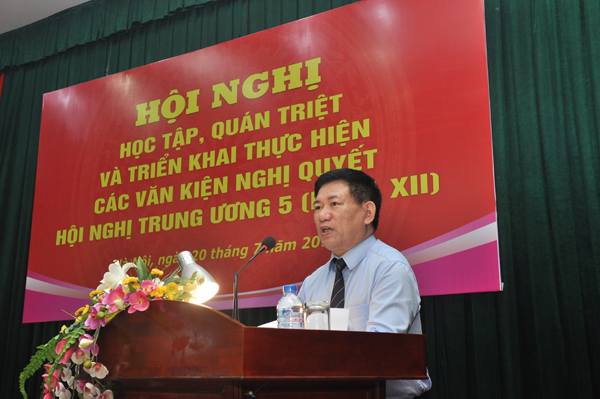 Phát biểu khai mạc hội nghị, đồng chí Hồ Đức Phớc - Bí thư Đảng ủy KTNN nêu rõ tầm quan trọng của Nghị quyết Hội nghị lần thứ 5 Ban Chấp hành Trung ương Đảng khóa XII với các nội dung trọng tâm: Hoàn thiện thể chế kinh tế thị trường định hướng XHCN; sắp xếp, đổi mới và nâng cao hiệu quả doanh nghiệp Nhà nước; phát triển kinh tế tư nhân trở thành một động lực quan trọng của nền kinh tế thị trường định hướng XHCN. Khẳng định đây là những vấn đề cốt yếu, mang tính đột phá đối với việc thực hiện nhiệm vụ trọng tâm do Đại hội Đảng khóa XII đã đề ra về phát triển kinh tế, xã hội. Đồng chí cho rằng, Kiểm toán nhà nước có một vai trò hết sức quan trọng trong việc đưa Nghị quyết Hội nghị TW5 vào thực tiễn cuộc sống, góp phần xây dựng từng bước đồng bộ hệ thống thể chế quản lý kinh tế, sắp xếp, đổi mới nâng cao hiệu quả doanh nghiệp Nhà nước, làm minh bạch nền tài chính quốc gia. “Hội nghị học tập, quán triệt và triển khai thực hiện Nghị quyết TW5 sẽ giúp cán bộ, đảng viên nắm vững các nội dung cơ bản của Nghị quyết; đồng thời vận dụng các mục tiêu, quan điểm, nhiệm vụ, giải pháp vào xây dựng chương trình, kế hoạch hành động của cơ quan, đơn vị, triển khai Nghị quyết một cách hiệu quả, thiết thực” .