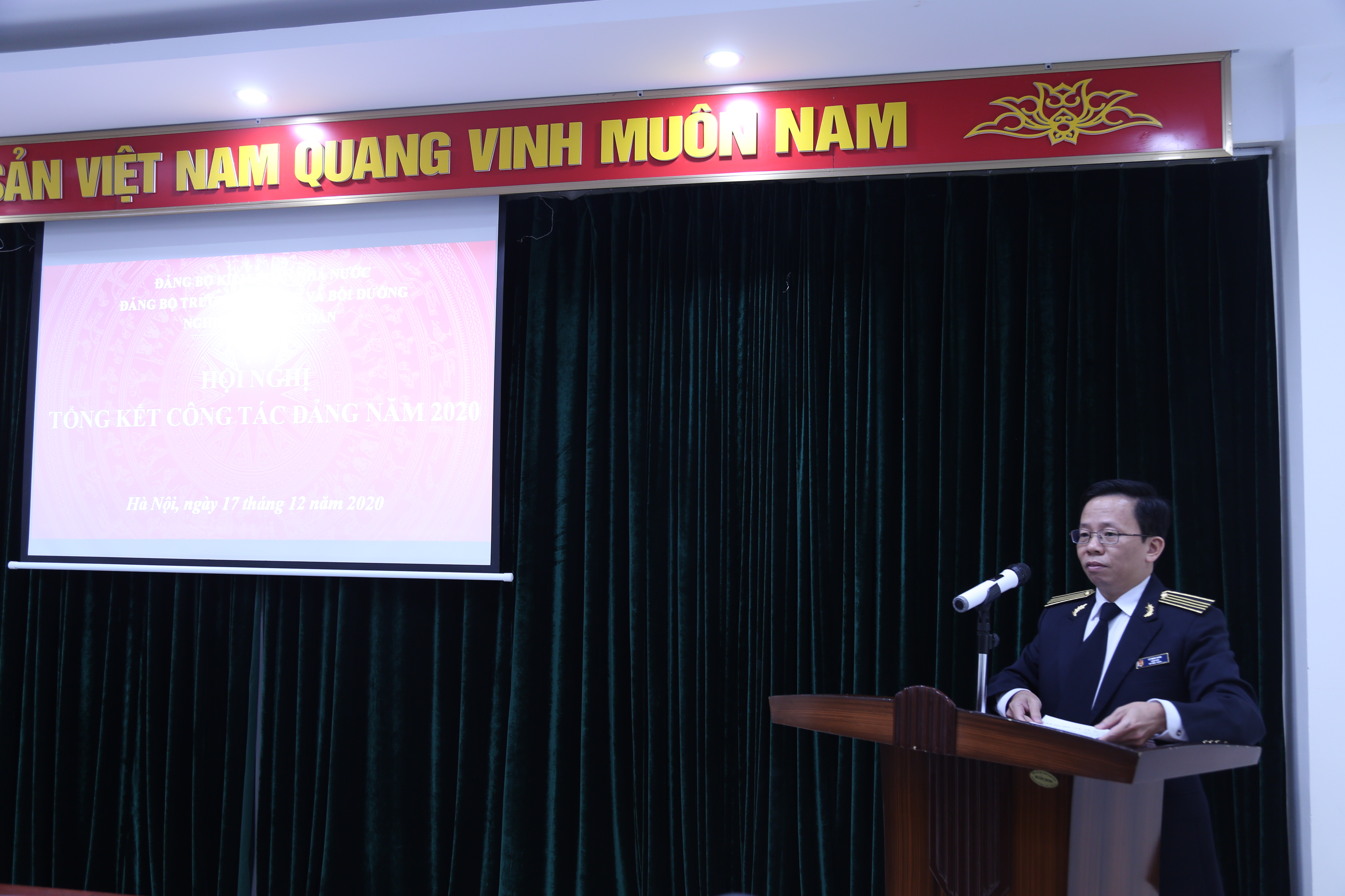 Đồng chí Lê Đình Thăng phát biểu chỉ đạo Hội nghị Về dự với Hội nghị, đồng chí ông Lê Đình Thăng, Trưởng Ban Tuyên giáo Đảng ủy KTNN đã phát biểu và có ý kiến chỉ đạo với Đảng bộ Trường và mong rằng bước sang năm 2021, Đảng bộ Trường tiếp tục phát huy những kết quả đã đạt được và phát huy tinh thần đoàn kết, sáng tạo để xây dựng Trường ngày càng phát triển.