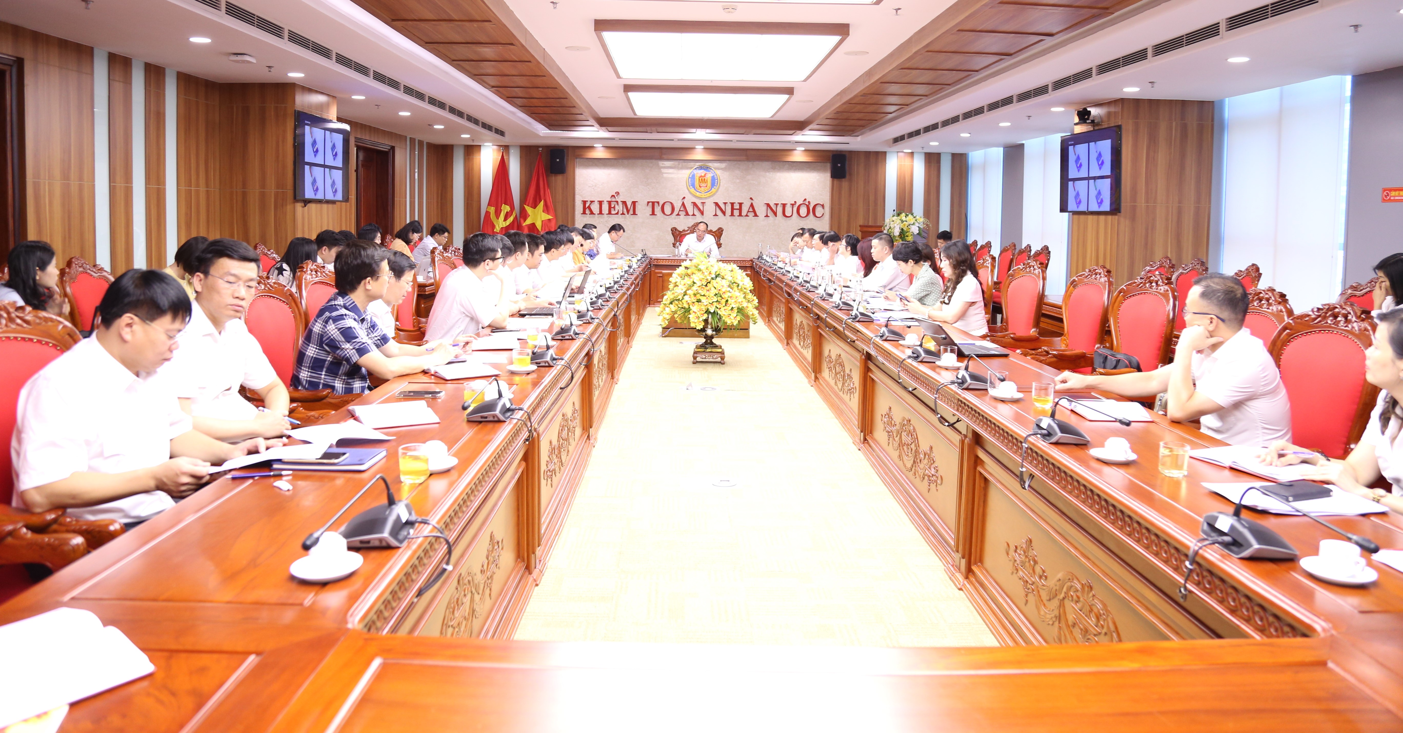 Phó Tổng KTNN Bùi Quốc Dũng chủ tọa triển khai các nhiệm vụ tới các Tổ công tác phục vụ Diễn đàn.