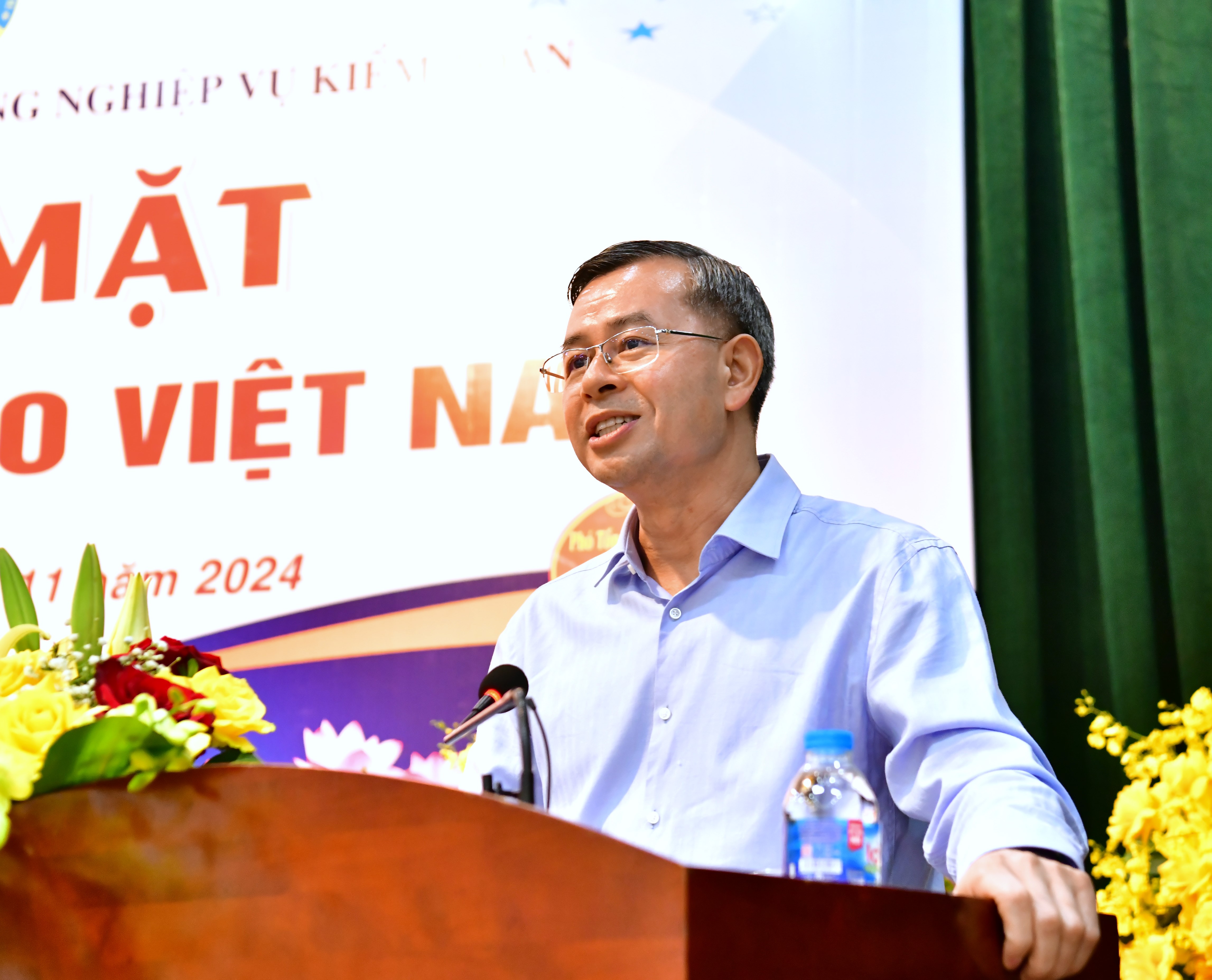 Giám đốc Trường Trần Kim Lộc báo cáo kết quả hoạt động của Trường năm 2024 Trong công tác nghiên cứu khoa học, Trường được giao tổ chức quản lý 26 đề tài nghiên cứu khoa học cấp Bộ và 13 đề tài cấp Cơ sở, trong đó có 03 đề tài cấp Bộ theo phương thức xét chọn do Thường trực Hội đồng khoa học đặt hàng. Trường đã huy động được đông đảo đội ngũ các nhà khoa học tham gia nghiên cứu khoa học bao gồm cả các cán bộ trong và ngoài ngành với hơn 200 lượt cán bộ tham gia nghiên cứu khoa học. Trường đã chủ trì tổ chức thành công các hội thảo khoa học, tham gia phối hợp tổ chức nhiều tọa đàm chuyên môn có chất lượng, là diễn đàn trao đổi, chia sẻ thông tin, kinh nghiệm và đề xuất các giải pháp nâng cao chất lượng, hiệu lực, hiệu quả hoạt động kiểm toán, đáp ứng được yêu cầu của Đảng và Nhà nước.