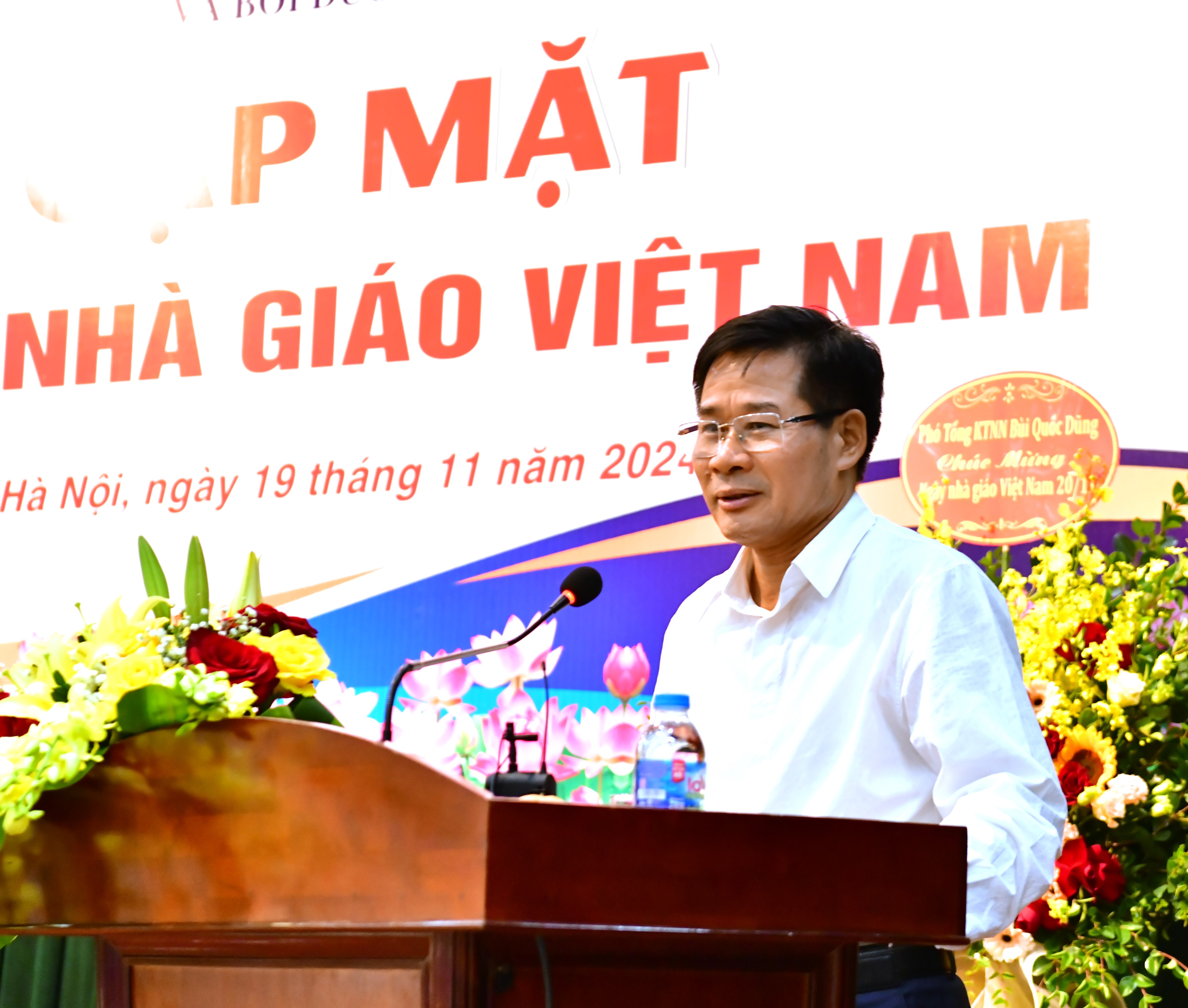 Tổng Kiểm toán nhà nước Ngô Văn Tuấn phát biểu chúc mừng đội ngũ công chức, viên chức, người lao động của Trường Báo cáo về kết quả hoạt động của Trường trong năm 2024, Giám đốc Trường Trần Kim Lộc cho biết, Trường đã tham mưu Tổng Kiểm toán nhà nước triển khai biên soạn thêm các chương trình bồi dưỡng mới, biên soạn mới và rà soát 11 tài liệu bồi dưỡng. Trong năm có 216 lượt người tham gia hoạt động biên soạn, nghiệm thu chương trình, tài liệu bồi dưỡng, trong đó giảng viên của Trường có 33 lượt người tham gia, các đơn vị trong ngành có 183 lượt người tham gia từ 22 đơn vị trực thuộc KTNN. Tính đến thời điểm hiện tại, Trường đã tổ chức 71/82 lớp với hình thức đa dạng, kết hợp tổ chức trực tiếp và trực tuyến. Số giảng viên trong ngành tham gia các lớp bồi dưỡng năm 2024 là 127 lượt người. Bên cạnh đó, Trường cũng đã quan tâm thực hiện nhiều giải pháp đổi mới công tác đào tạo, bồi dưỡng, góp phần nâng cao chất lượng dạy và học. Năm 2024, Trường tiếp chủ trì, phối hợp với các đơn vị trong ngành tổ chức thành công kỳ đánh giá việc cập nhật kiến thức chuyên môn nghiệp vụ cho công chức, kiểm toán viên toàn ngành. Nhằm phục vụ công tác đánh giá, cập nhật kiến thức, chuyên môn nghiệp vụ trong hoạt động kiểm toán của KTNN năm 2025 được tốt hơn, Trường đã chủ trì, phối hợp với các đơn vị trong ngành rà soát và bổ sung danh mục văn bản tài liệu và ngân hàng câu hỏi phục vụ đánh giá. Số lượng câu hỏi sau rà soát tăng 404 câu lên 2.479 câu, tăng 19,5% so với năm 2023.