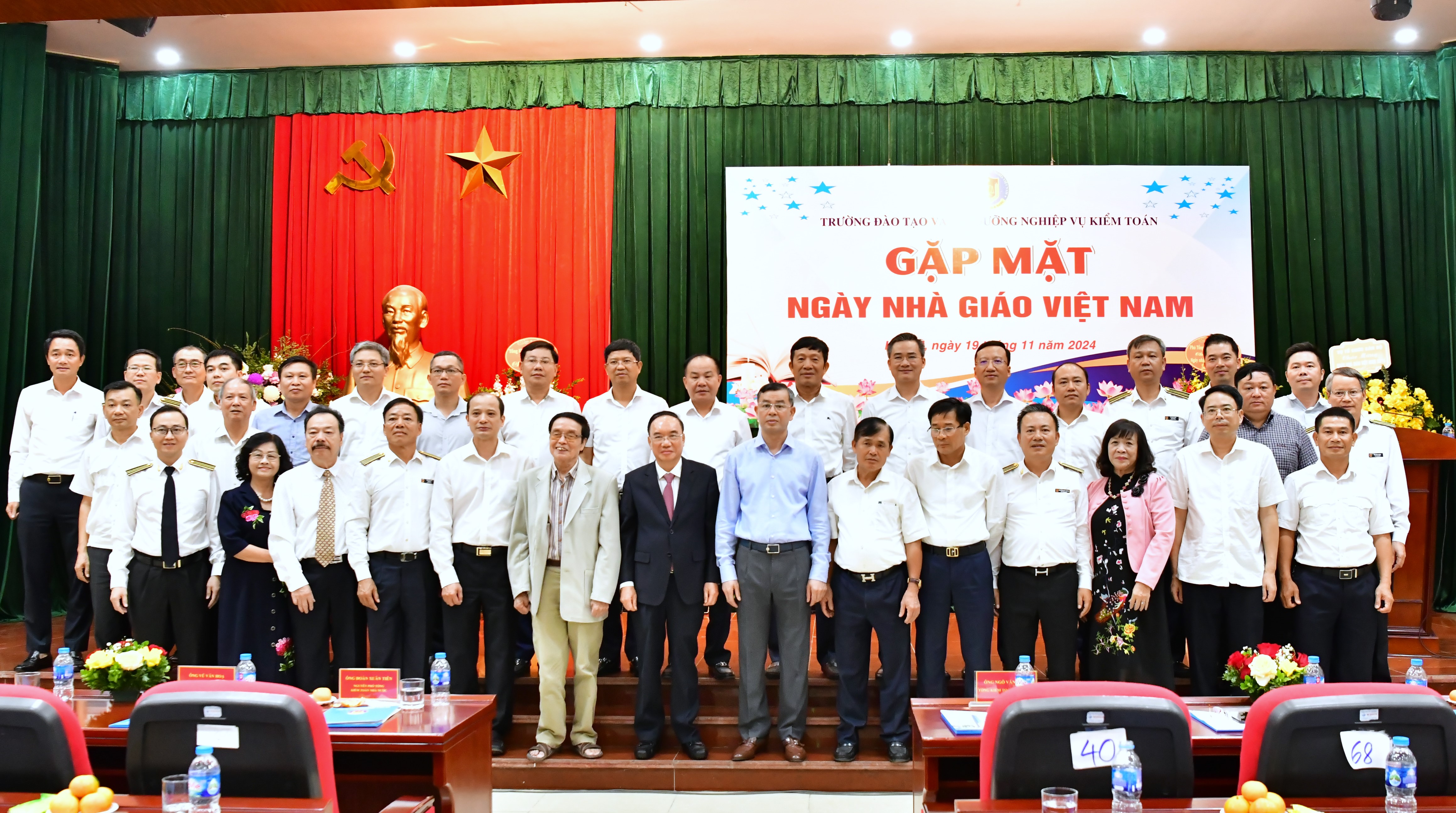 (khoahockiemtoan.vn) - Chiều 19/11, Trường Đào tạo và Bồi dưỡng nghiệp vụ kiểm toán tổ chức buổi gặp mặt nhân Ngày Nhà giáo Việt Nam. Tới dự buổi gặp mặt có Tổng Kiểm toán nhà nước Ngô Văn Tuấn, nguyên Phó Tổng Kiểm toán nhà nước Đoàn Xuân Tiên, Vũ Văn Họa; các đồng chí nguyên lãnh đạo Trường; lãnh đạo các đơn vị trực thuộc Kiểm toán nhà nước (KTNN); giảng viên kiêm chức; các thế hệ lãnh đạo, công chức, viên chức, người lao động của Trường Đào tạo và Bồi dưỡng nghiệp vụ kiểm toán.