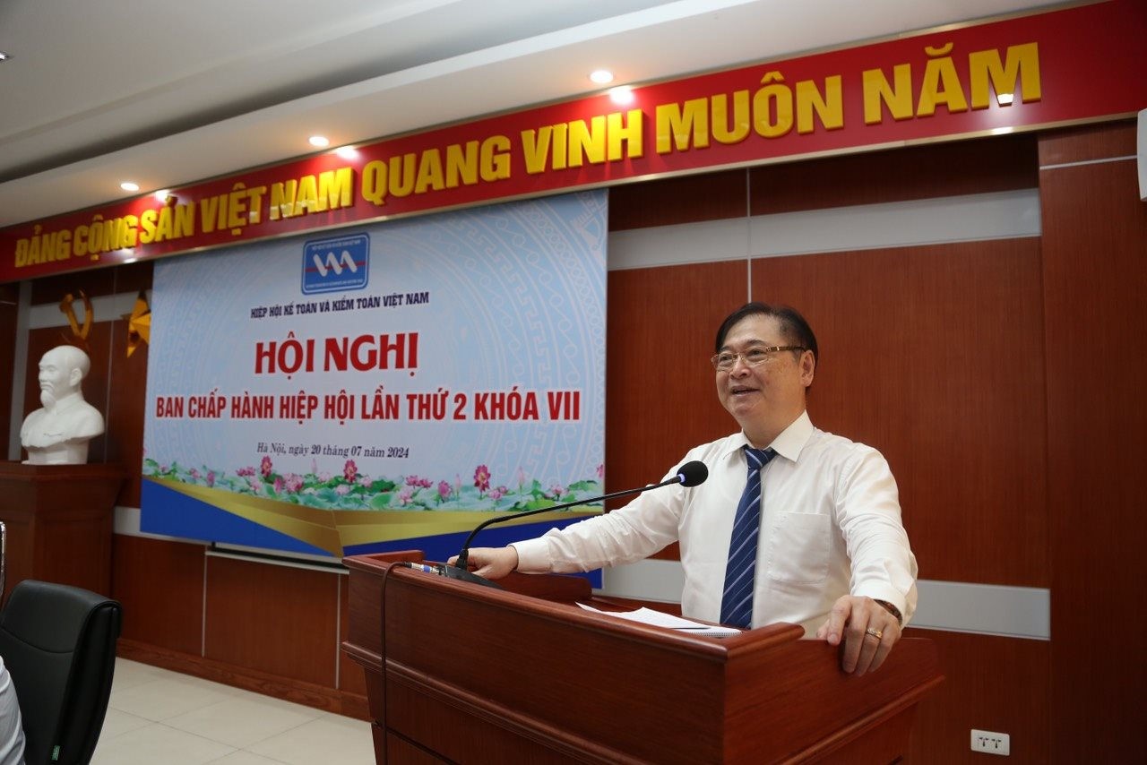 GS,TS. Đoàn Xuân Tiên - Chủ tịch VAA phát biểu tại Hội nghị Chủ tịch VAA cũng đã có chuyến thăm và làm việc với 15 tỉnh, thành phố phía Nam, dự Đại hội Hội Kế toán TP. Hồ Chí Minh và làm việc với Hội Kế toán - Kiểm toán Đồng Nai. Các chuyến thăm và làm việc đã thể hiện nỗ lực của VAA trong việc duy trì mối quan hệ chặt chẽ với các chi hội địa phương, tăng cường sự phối hợp và chia sẻ kinh nghiệm.