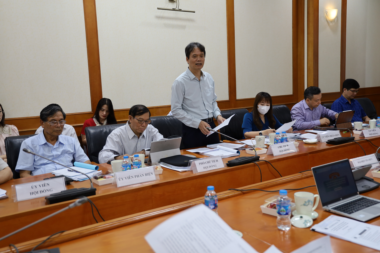 TS Hà Thị Mỹ Dung, Phó Tổng Kiểm toán nhà nước thay mặt Ban đề tài phát biểu tại Hội đồng