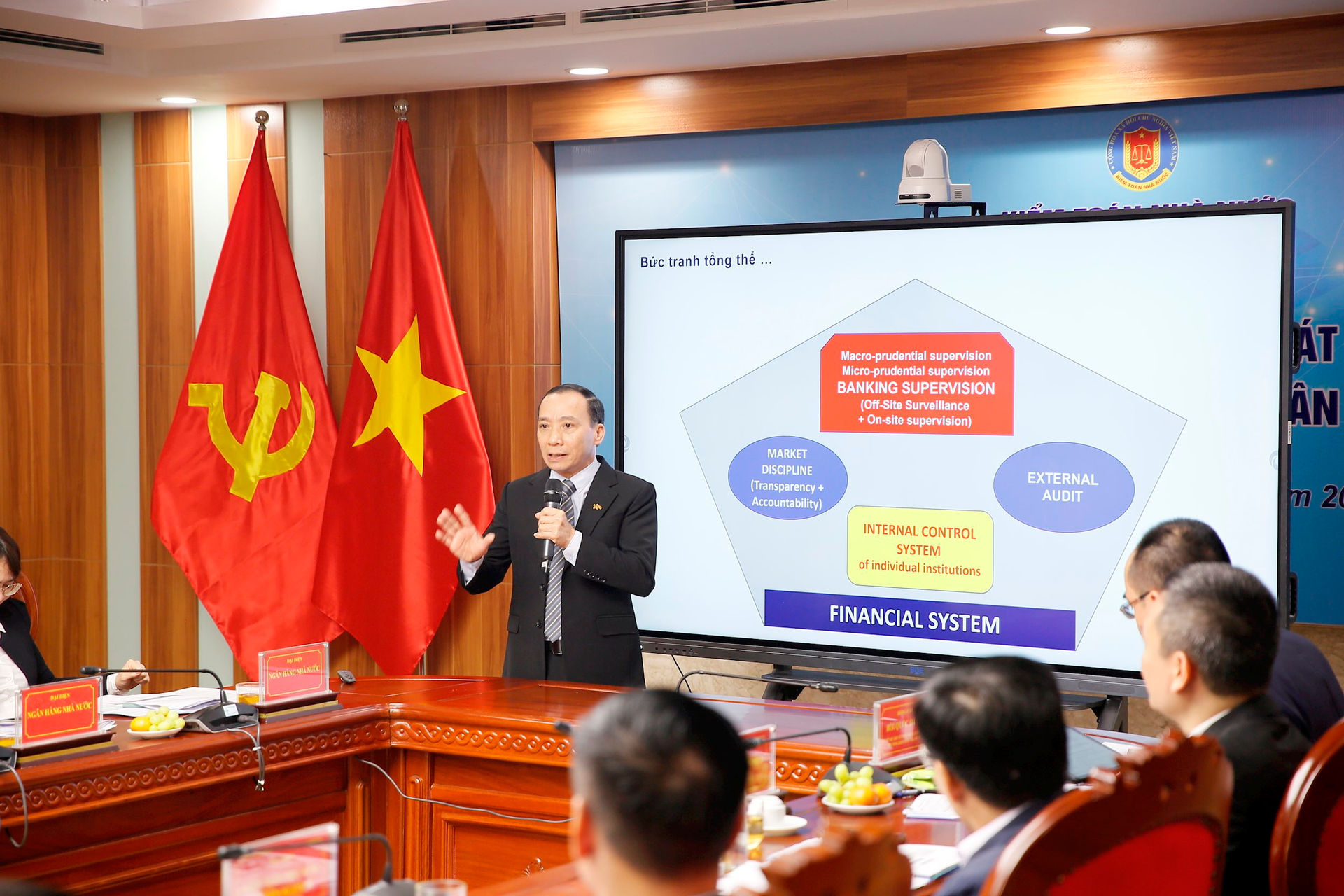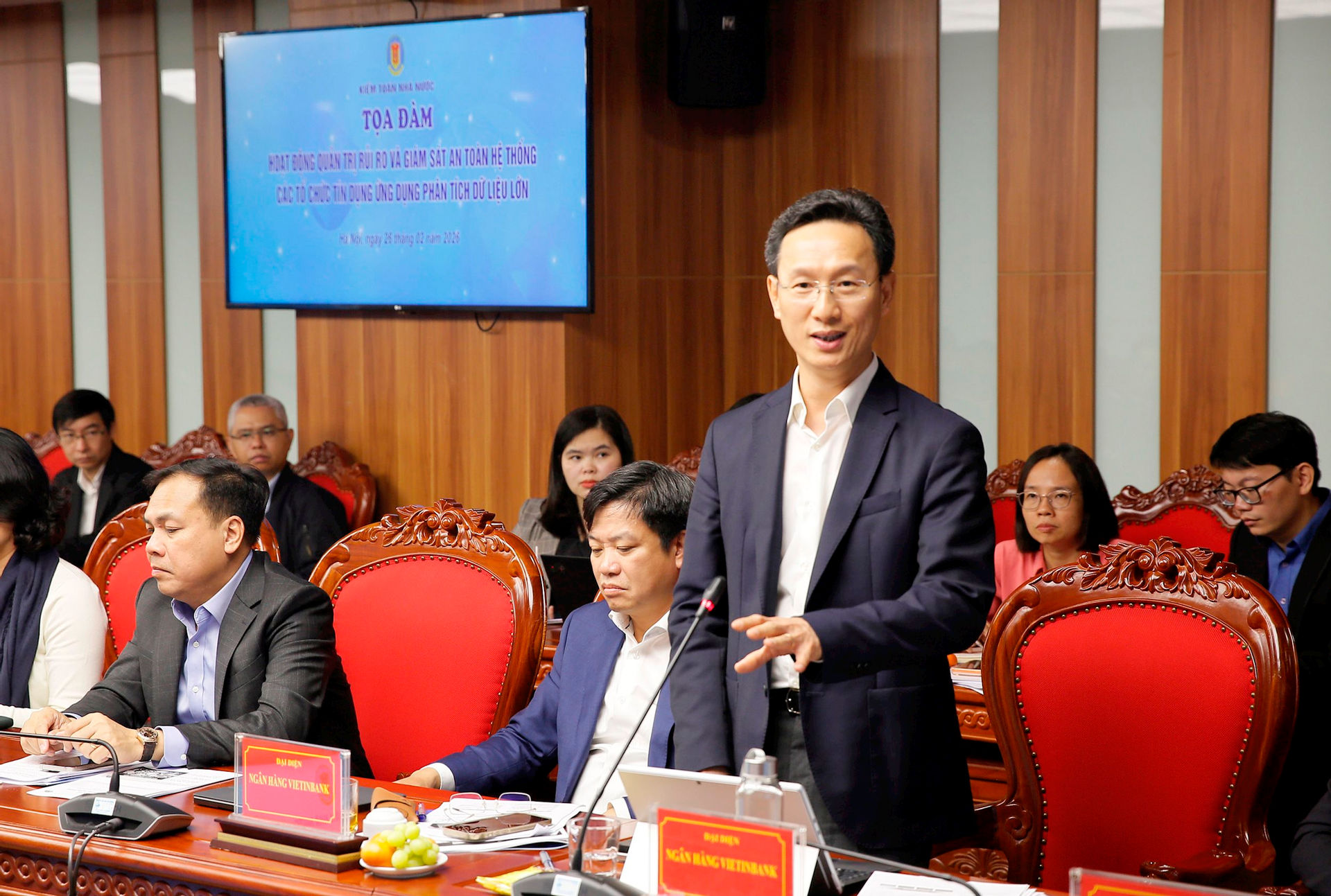 Ngày 26/02, tại trụ sở Kiểm toán nhà nước, Cục Công nghệ thông tin và Kiểm toán nhà nước Chuyên ngành VII phối hợp tổ chức Tọa đàm với chủ đề “Hoạt động quản trị rủi ro và giám sát an toàn hệ thống các tổ chức tín dụng ứng dụng phân tích dữ liệu lớn”. Phó Tổng Kiểm toán nhà nước Bùi Quốc Dũng - Ủy viên dự khuyết Ban Chấp hành Trung ương Đảng chủ trì Tọa đàm.