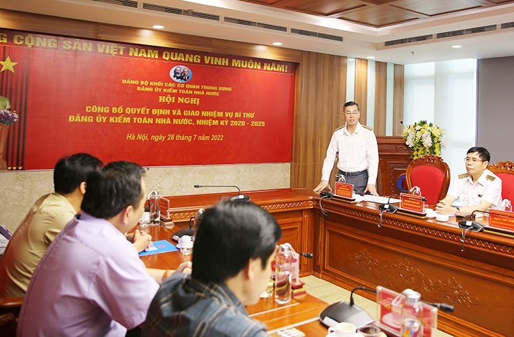 Hội nghị đã nghe Trưởng Ban Tổ chức, Đảng ủy Khối các cơ quan Trung ương Đinh Xuân Tùng công bố Quyết định 745-QĐ/ĐUK ngày 27/7/2022 của Ban Thường vụ Đảng ủy Khối các cơ quan Trung ương về việc chỉ định đồng chí Ngô Văn Tuấn, Ủy viên Trung ương Đảng, Bí thư Ban Cán sự đảng, Phó Tổng Kiểm toán nhà nước phụ trách Kiểm toán nhà nước tham gia Ban Chấp hành, Ban Thường vụ và giữ chức Bí thư Đảng ủy Kiểm toán nhà nước nhiệm kỳ 2020-2025.