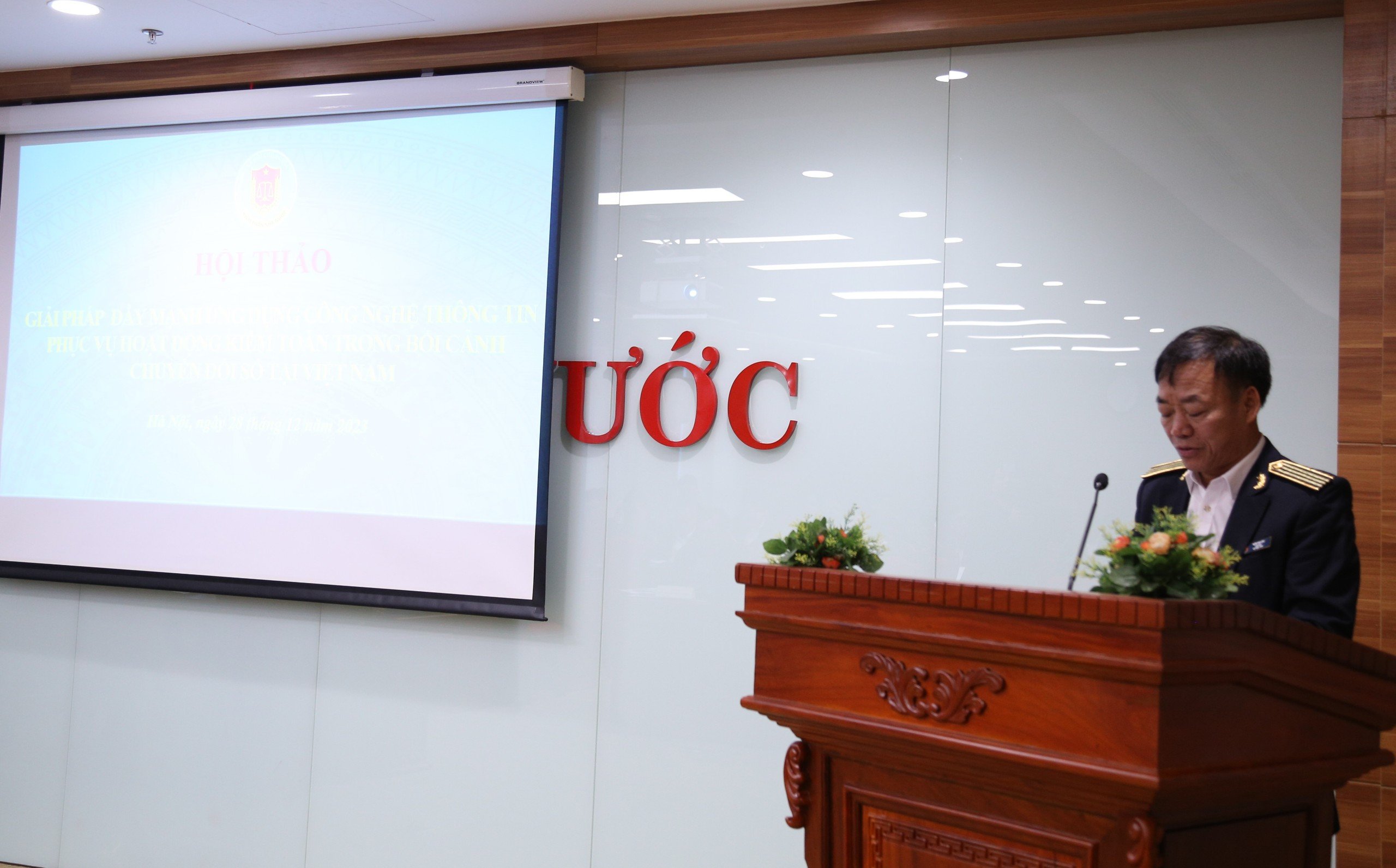 (khoahockiemtoan.vn) - Thực hiện Quyết định số 701/QĐ-KTNN này 16/5/2023 của Tổng KTNN về việc tổ chức Hội thảo cấp bộ, sáng ngày 28/12/2023, Trường ĐT&BD nghiệp vụ kiểm toán, KTNN chuyên ngành VII, Vụ hợp tác quốc tế phối hợp tổ chức Hội thảo “Giải pháp đẩy mạnh ứng dụng công nghệ thông tin phục vụ hoạt động kiểm toán trong bối cảnh chuyển đổi số tại Việt Nam”, đến dự Hội thảo có đại diện Bảo hiểm Xã hội Việt Nam, Ủy ban Quản lý vốn nhà nước, Hiệp hội Kế toán Công chứng Anh(ACCA), Hiệp hội Doanh nghiệp nhỏ và vừa Việt Nam, Ngân hàng Nhà nước Việt Nam, Công ty kiểm toán KPMG, E&Y, PWC…; đại diện lãnh đạo, cùng công chức, viên chức các đơn vị trực thuộc KTNN.