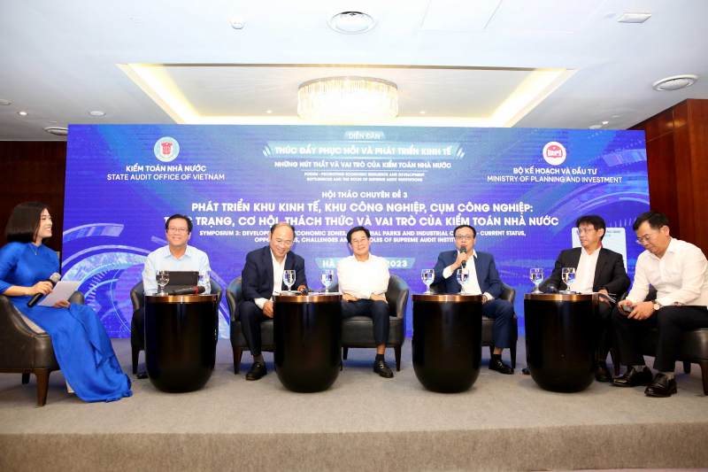 Phó Tổng Kiểm toán nhà nước Bùi Quốc Dũng phát biểu khai mạc Hội thảo Dự Hội thảo còn có sự tham gia của nhiều chuyên gia, nhà khoa học từ các tổ chức, trường đại học, học viện trong nước và quốc tế. Đại diện các cơ quan quản lý nhà nước Bộ Tài chính, Bộ Kế Hoạch Đầu tư, Bộ Xây dựng, Bộ Tài nguyên và Môi trường, Bộ Giao Thông - Vận tải, đại diện các hiệp hội; đại diện các Công ty kiểm toán, lãnh đạo đại diện các tập đoàn, Tổng công ty hoạt động trong lĩnh vực đầu tư phát triển Khu kinh tế - Khu công nghiệp, các Doanh nghiệp đang hoạt động tại các khu công nghiệp và đại diện các đại sứ quán Lào, Inđônêxia, Thụy Điển, Malaysia. Hội thảo do Phó Tổng Kiểm toán nhà nước Bùi Quốc Dũng và Thứ trưởng Bộ Kế hoạch và Đầu tư Nguyễn Thị Bích Ngọc đồng chủ trì.