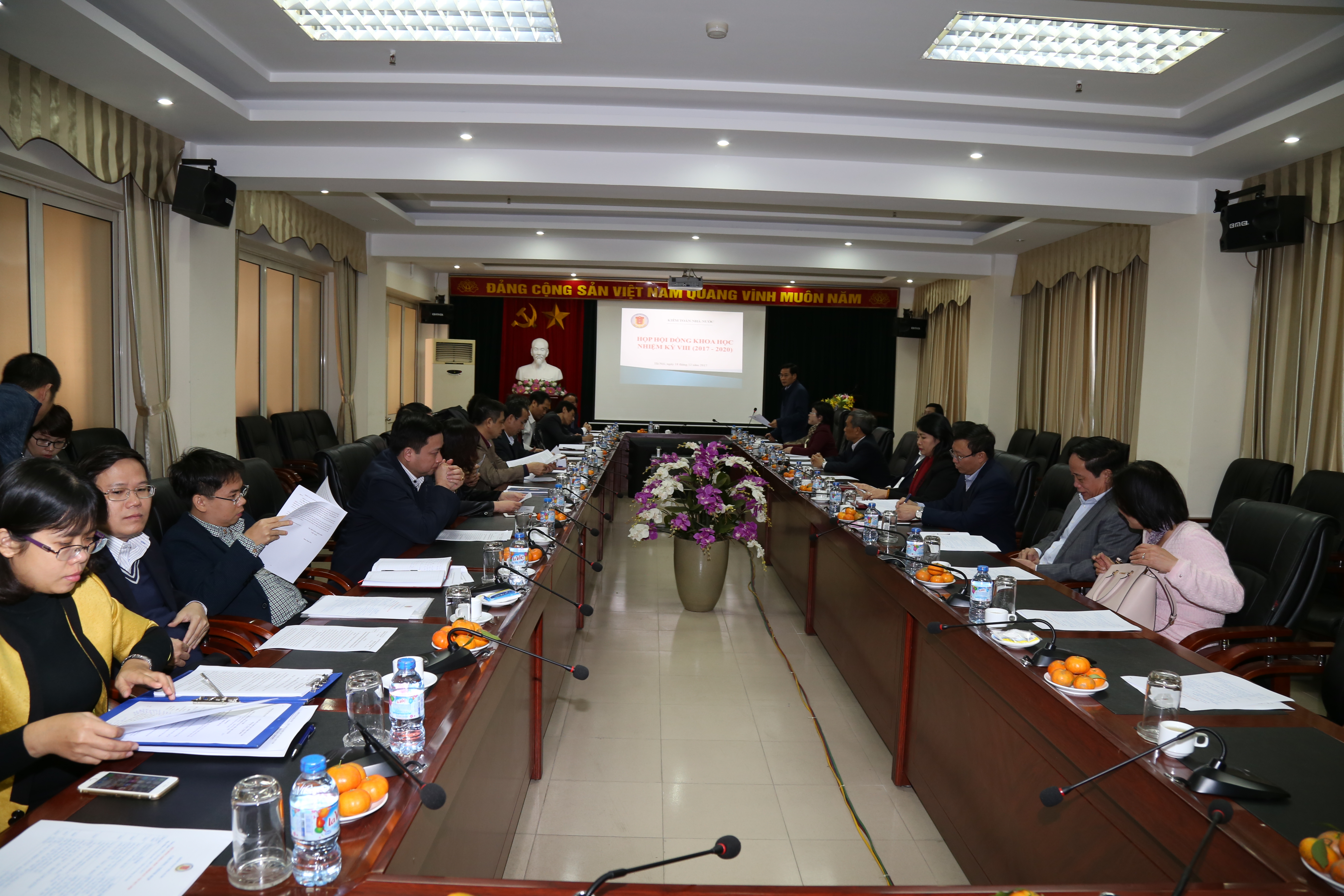 Toàn cảnh buổi họp Tại cuộc họp, TS. Lê Đình Thăng - Phó Chủ tịch thường trực HĐKH đã công bố Quyết định Thành lập Hội đồng khoa học nhiệm kỳ VIII và trình bày Báo cáo tổng kết hoạt động nhiệm kỳ VII và phương hướng nhiệm vụ của Hội đồng khoa học nhiệm kỳ VIII.
