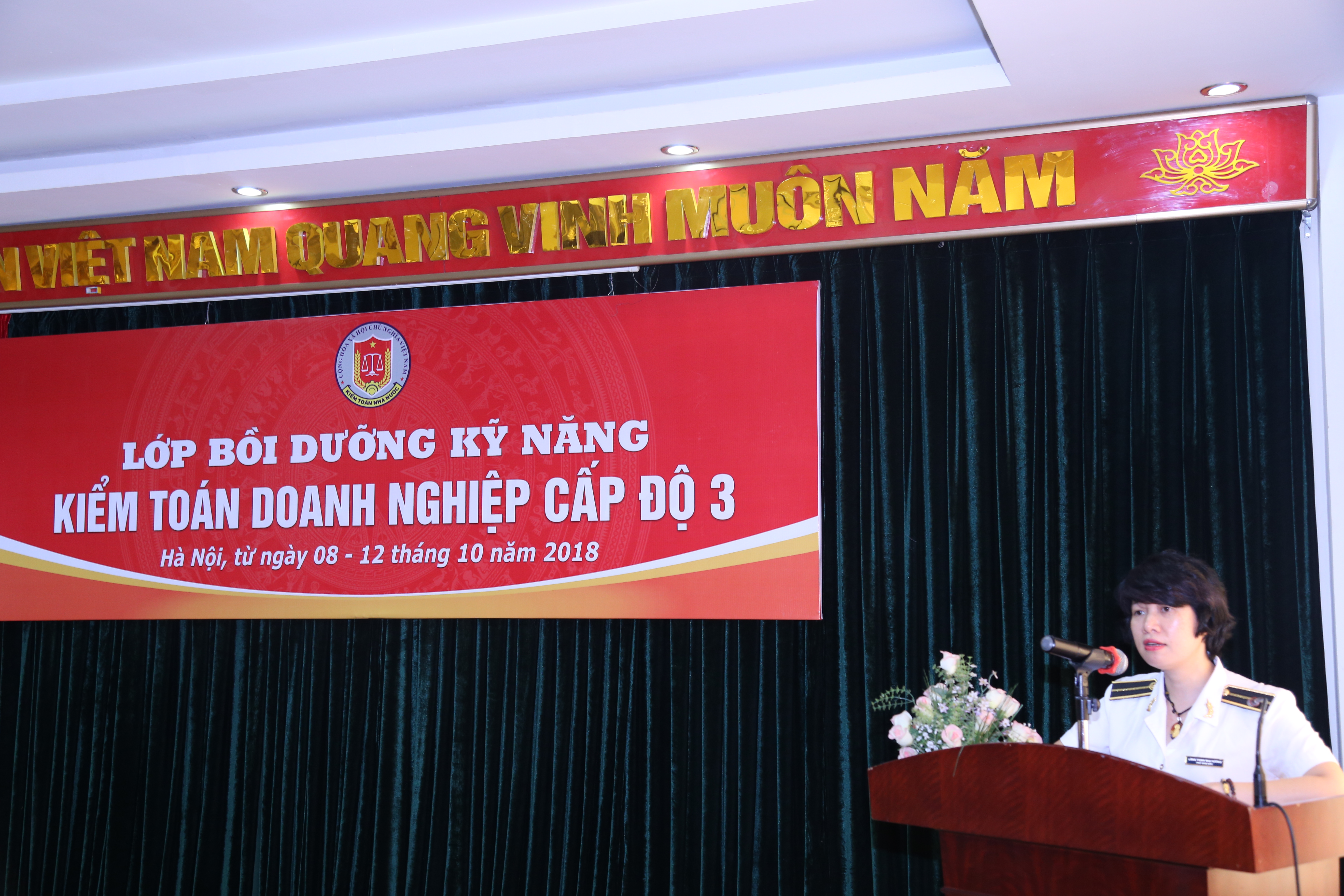 Cùng ngày, Trường ĐT&BD nghiệp vụ kiểm toán tổ chức Lễ khai giảng Lớp Bồi dưỡng kỹ năng kiểm toán doanh nghiệp cấp độ 3 cho, Phó Giám đốc Trường Lăng Trịnh Mai Hương đã đến phát biểu và khai mạc Lớp học.
