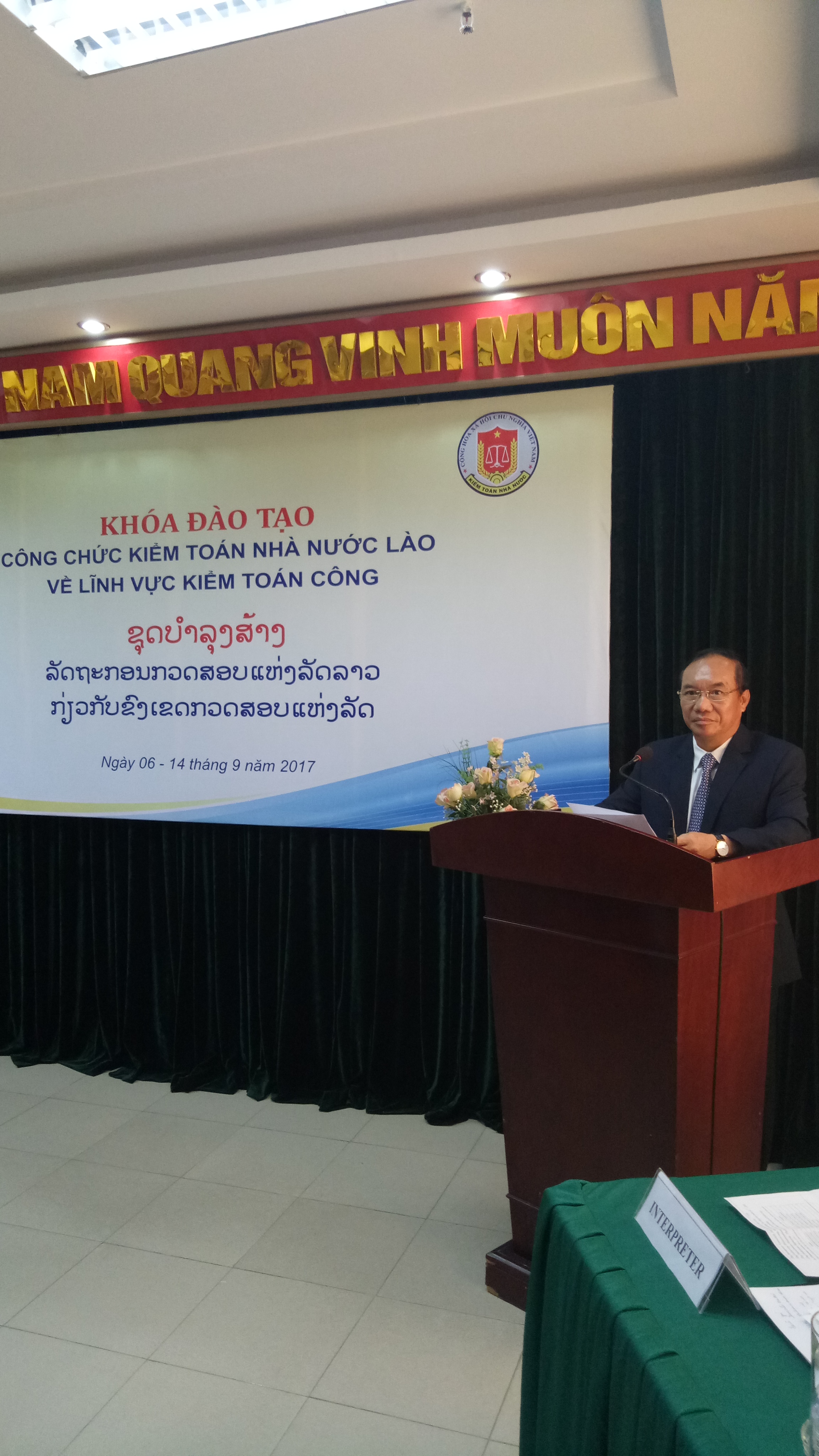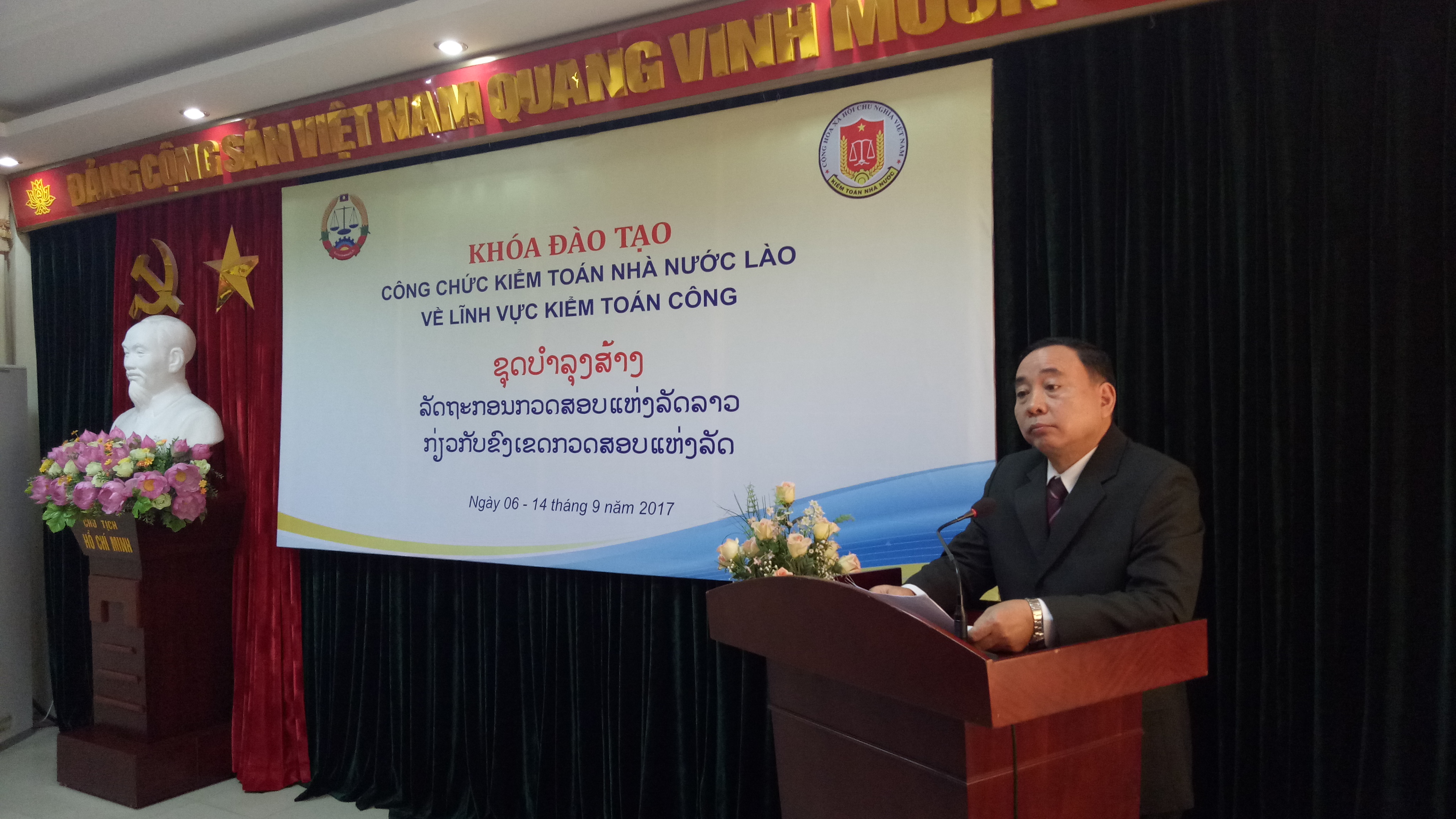 Phát biểu tại buổi Lễ khai giảng, ông Bao-pon Va-na-chít, Phó Chủ tịch KTNN Lào đã chân thành cảm ơn KTNN Việt Nam, Vụ Tổ chức Cán bộ, Vụ Hợp tác Quốc  tế, Trường ĐT&BD nghiệp vụ Kiểm toán đã quan tâm và đào tạo cho các KTV của KTNN Lào những chuyên đề rất thiết thực. Những chuyên đề này rất quan trọng đối với các KTV KTNN Lào và các KTV mới vào nghề, thông qua Khóa đào tạo này sẽ giúp cho KTV KTNN Lào nâng cao tay nghề, giúp cho việc thự hiện nhiệm vụ kiểm toán được hiệu quả, chất lượng ngày càng tốt hơn.
