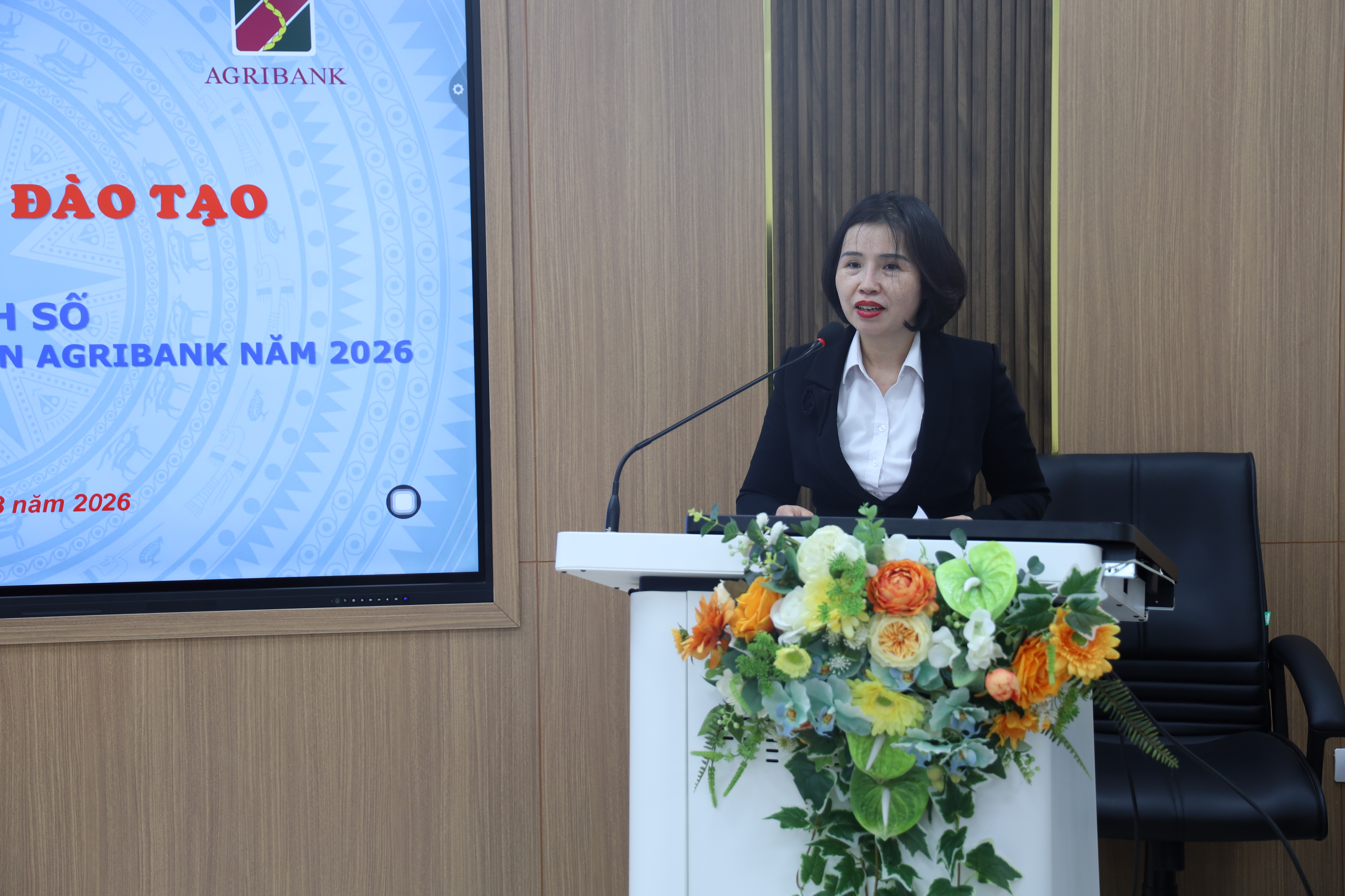 TS Nguyễn Thị Thu Hà - Giám đốc Trường Đào tạo cán bộ Agribank phát biểu tại Lễ khai giảng