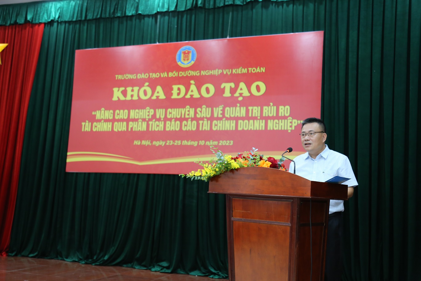 (khoahockiemtoan.vn) - Sáng ngày 23/10/2023, tại Hà Nội, Trường ĐT&BD nghiệp vụ kiểm toán (Trường) khai giảng Lớp “Nâng cao nghiệp vụ chuyên sâu về quản trị rủi ro tài chính qua phân tích báo cáo tài chính doanh nghiệp”. Dự lễ khai giảng Lớp học có ông Trần Kim Lộc - Giám đốc Trường, ông Nguyễn Huy Hoàng - Phó Giám đốc Trường, bà Đặng Thị Thu Nga đại diện Ủy ban Quản lý vốn nhà nước tại doanh nghiệp và các học viên của Lớp học.