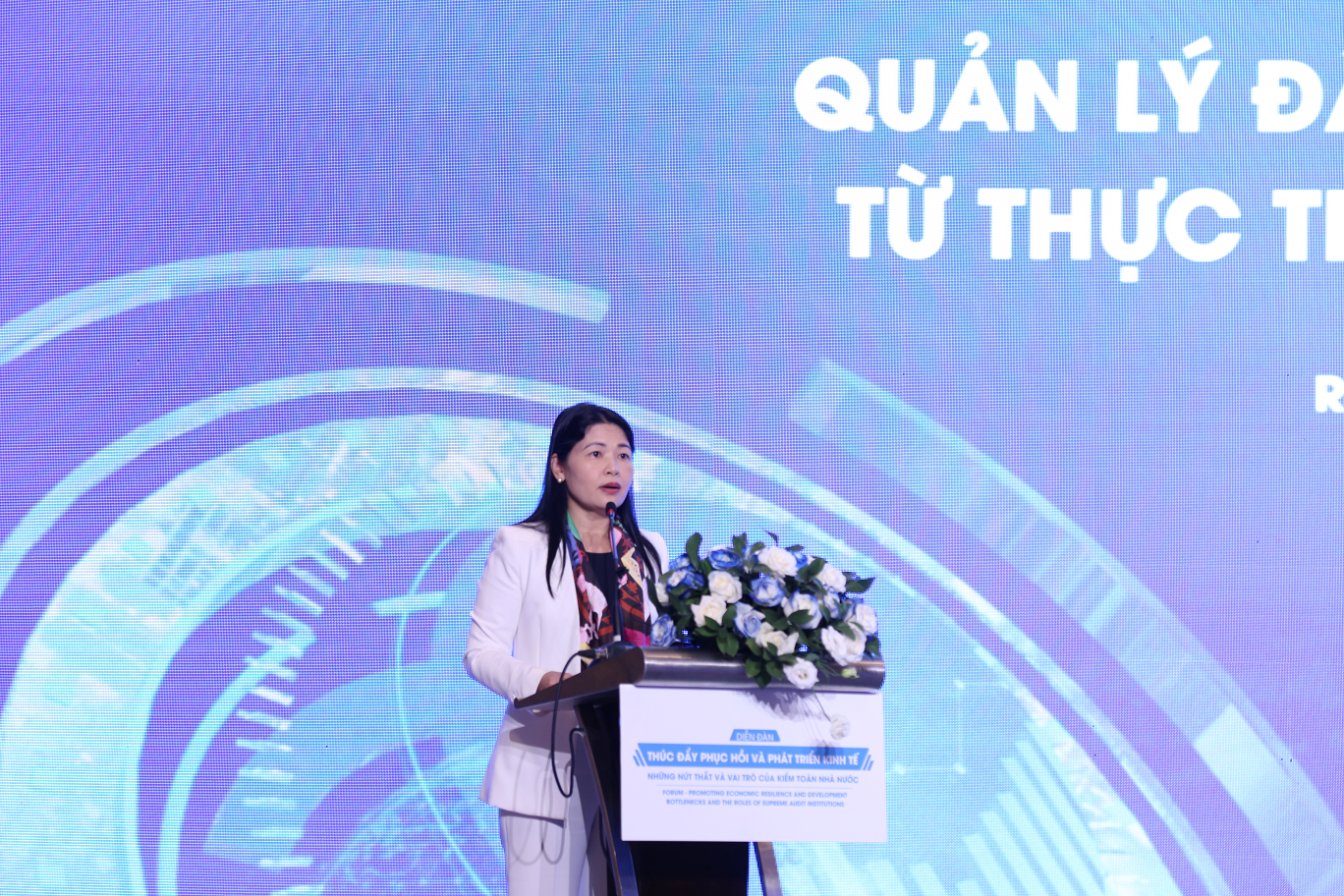 Toàn cản Hội thảo Xuất phát từ bối cảnh đó, Kiểm toán nhà nước quyết định lựa chọn vấn đề “Quản lý đất đai và xác định giá đất - Những bất cập qua thực tiễn và hoạt động kiểm toán của Kiểm toán nhà nước" là một trong 03 chuyên để thảo luận chính của Diễn đàn “Thúc đẩy phục hồi và phát triển kinh tế - Những nút thắt và vai trò của Kiểm toán nhà nước”.