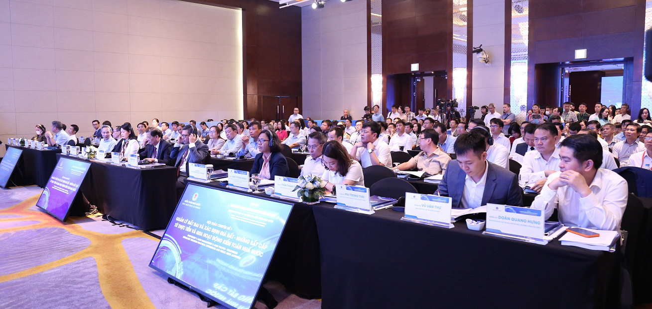 Các đại biểu tham gia Tọa đàm tại Hội thảo phiên 2 Tại hội thảo đã có 10 tham luận được gửi tới cho Ban tổ chức, có 03 tham luận được trình bày trực tiếp, hơn 20 ý kiến thảo luận về vấn đề “định giá đất” và về những vấn đề chung trong “quản lý, sử dụng đất đai”, ở cấp các cơ quan chuyên môn và ở cấp các Lãnh đạo Bộ, Ngành, Lãnh đạo Kiểm toán nhà nước, Lãnh đạo các địa phương. Đặc biệt, trong đó có 01 tham luận của đại diện Ngân hàng Thế giới trình bày với Hội thảo thông qua hình thức trực tuyến về “Hiện đại hóa công tác thẩm định giá đất tại Việt Nam”.