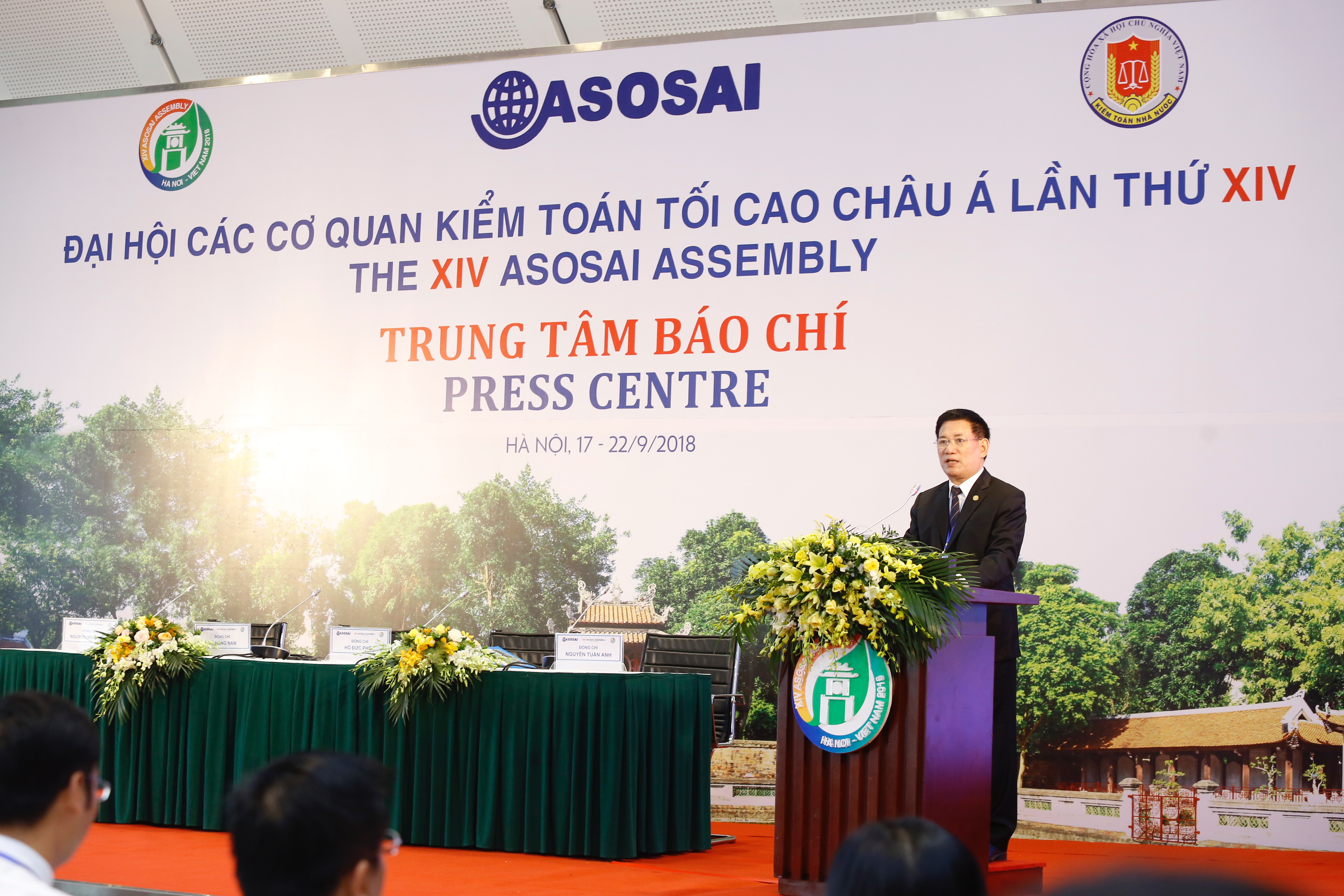 Tổng Kiểm toán nhà nước phát biểu tại họp báo Theo ban Tổ chức Đại hội, Đại hội ASOSAI 14 với chủ đề: “Kiểm toán môi trường vì sự phát triển bền vững” là một sự kiện quốc tế cấp cao có quy mô lớn nhất của ASOSAI lần đầu tiên được tổ chức tại Việt Nam. Đại hội sẽ có sự tham dự của khoảng 250 đại biểu đến từ 46 cơ quan kiểm toán tối cao các quốc gia châu Á với cấp trưởng đoàn tương đương từ bộ trưởng trở lên; đại diện INTOSAI (Tổ chức quốc tế Các cơ quan Kiểm toán tối cao) và một số tổ chức quốc tế trong vai trò quan sát viên. Đại hội cũng dự kiến đón tiếp khoảng 350 khách mời trong nước đại diện cho các cơ quan của Đảng và Nhà nước; các tổ chức chính trị, xã hội, đoàn thể, địa phương, trường đại học và viện nghiên cứu; các tổ chức quốc tế và đại sứ quán một số quốc gia tại Việt Nam.