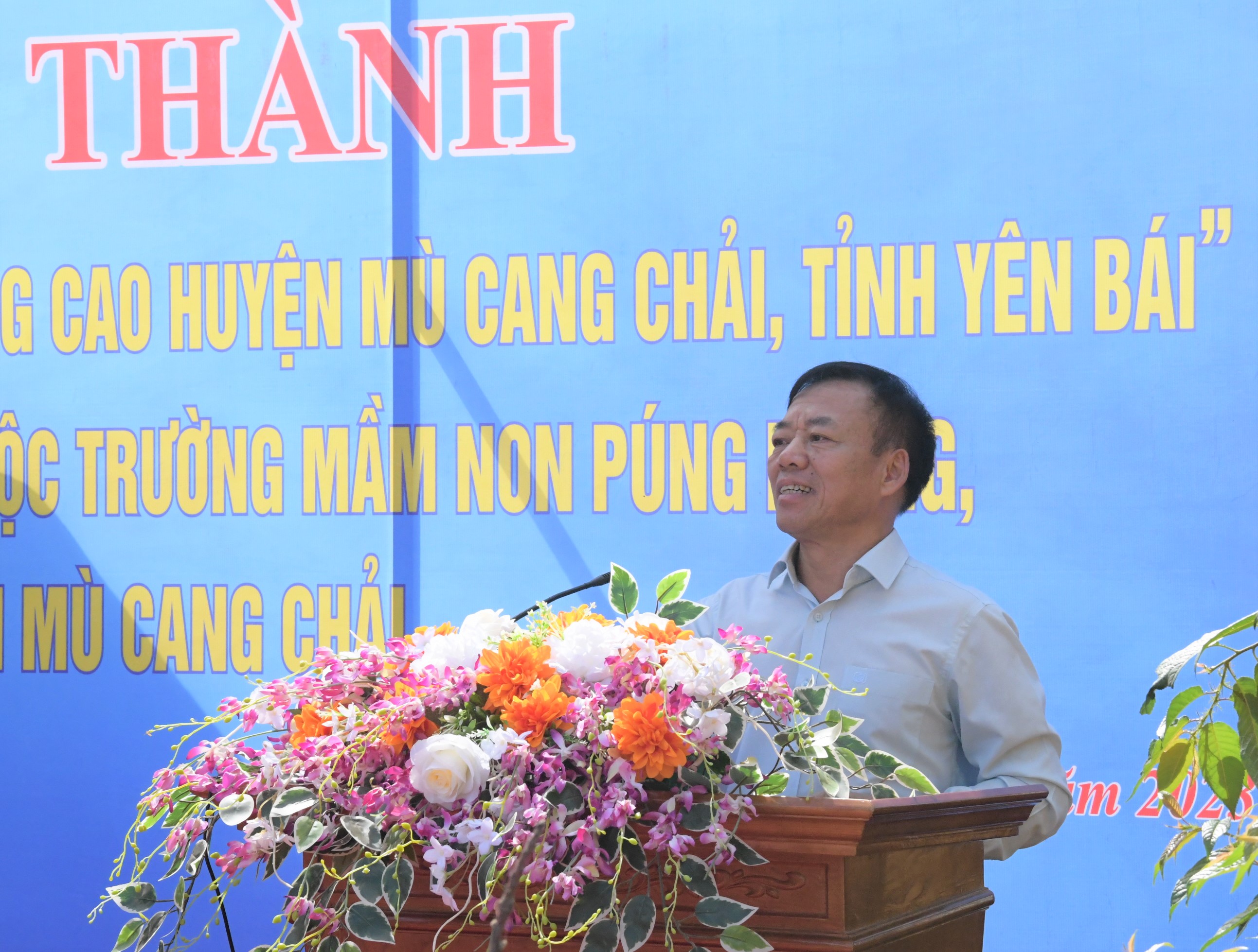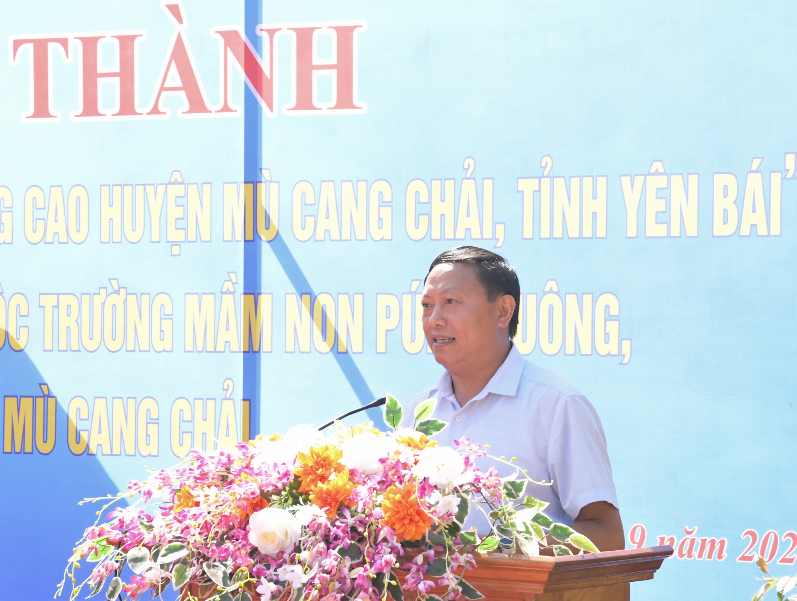 Đồng chí Giàng A Vừ - Phó Bí thư Thường trực Huyện ủy Mù Cang Chải phát biểu Đồng chí Giàng A Vừ đề nghị các thầy cô giáo Trường Mầm non Púng Luông sử dụng các công trình hiệu quả, thưởng xuyên bảo dưỡng để có thời gian sử dụng lâu dài, hỗ trợ nhiều thế hệ học sinh đến trường. Cùng với đó, Đồng chí Giàng A Vừ mong muốn thời gian tới, các cơ quan KTNN, Bộ Giao thông Vận tải, Mặt trận Tổ quốc Việt Nam, Ban Kinh tế Trung ương tiếp tục quan tâm, giúp đỡ, chung tay để chính quyền địa phương có thêm những công trình ý nghĩa, thiết thực phục vụ cho sự nghiệp giáo dục của huyện.