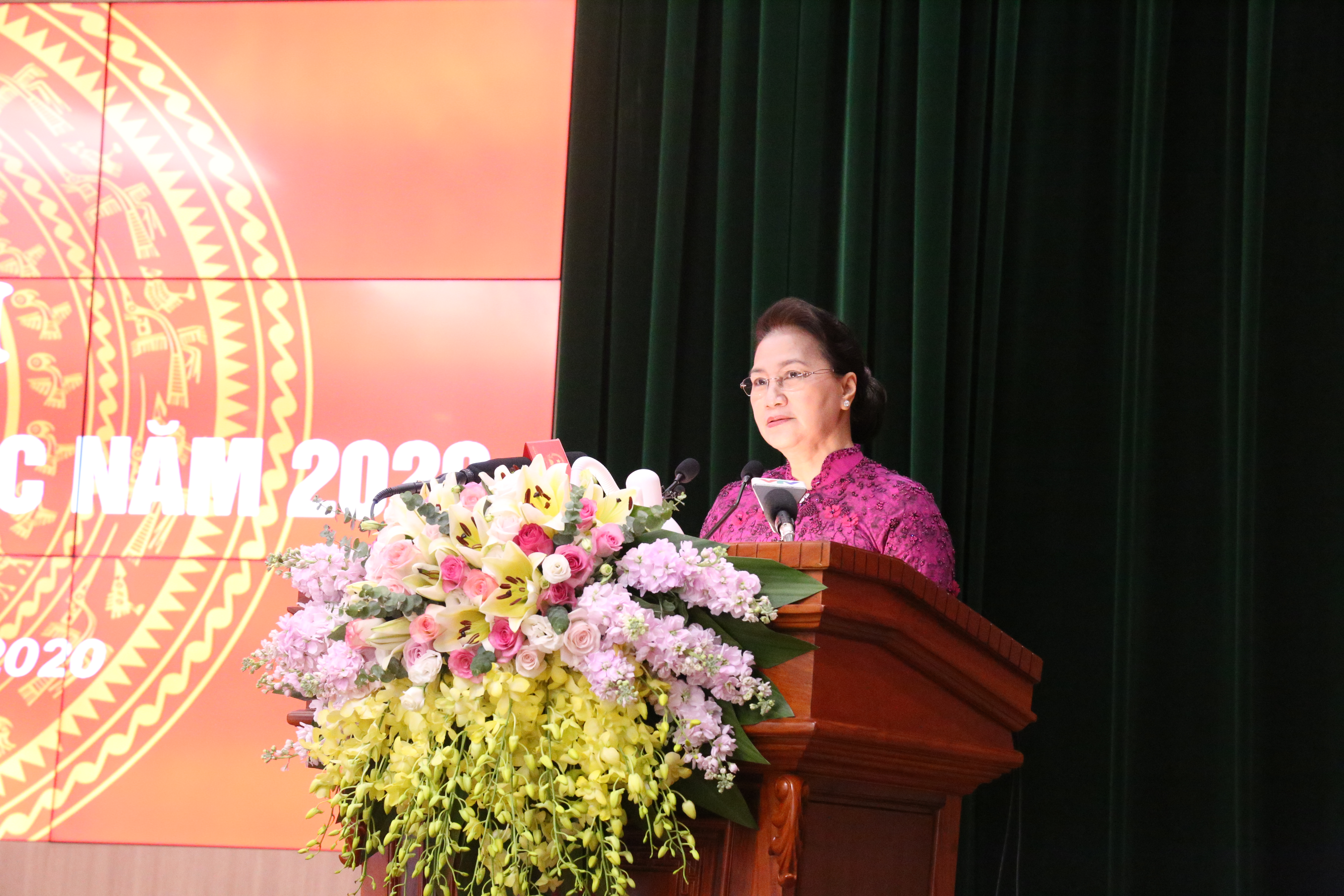 Chủ tịch Quốc hội Nguyễn Thị Kim Ngân phát biểu chỉ đạo Hội nghị Phát biểu tại Hội nghị, Chủ tịch Quốc hội Nguyễn Thị Kim Ngân biểu dương những kết quả đạt được năm 2019 của KTNN. “Với các thành tích đã đạt được, KTNN đã ngày càng tạo được niềm tin với Đảng, Nhà nước và Nhân dân. KTNN đã thể hiện rõ nét vai trò của mình, hỗ trợ tích cực cho hoạt động của Quốc hội trong lĩnh vực lập pháp, giám sát và quyết định các vấn đề quan trọng của đất nước; các kết quả kiểm toán là căn cứ quan trọng để Quốc hội xem xét, quyết định và giám sát việc thực hiện các nội dung về ngân sách nhà nước và đầu tư công. “KTNN cũng giúp Chính phủ kịp thời nắm được tình hình để tăng cường công tác chỉ đạo, quản lý, điều hành”.