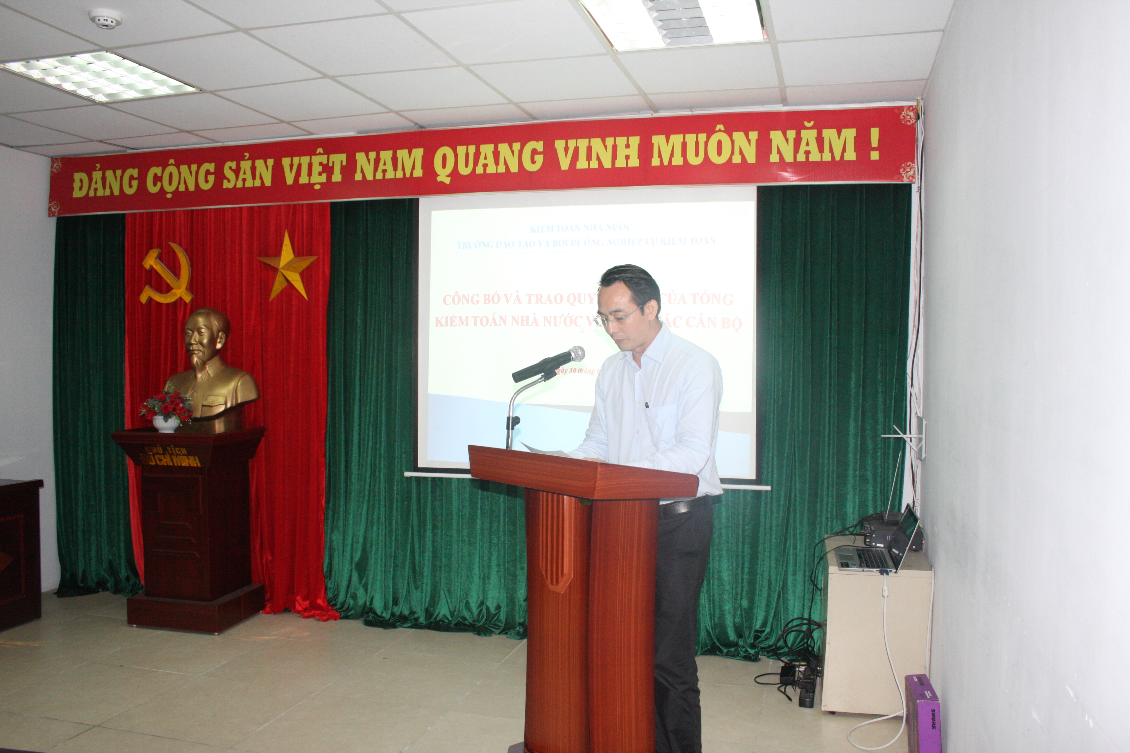 Thay mặt Lãnh đạo Vụ Tổ Chức Cán bộ, ông Nguyễn Lương Thuyết - Phó Vụ trưởng Vụ Tổ Chức Cán bộ đã công bố Quyết định số 514/QĐ-KTNN ngày 12/4/2017 của Tổng KTNN về việc nghỉ hưu để hưởng chế độ bảo hiểm xã hội đối với PGS.TS Phan Duy Minh.