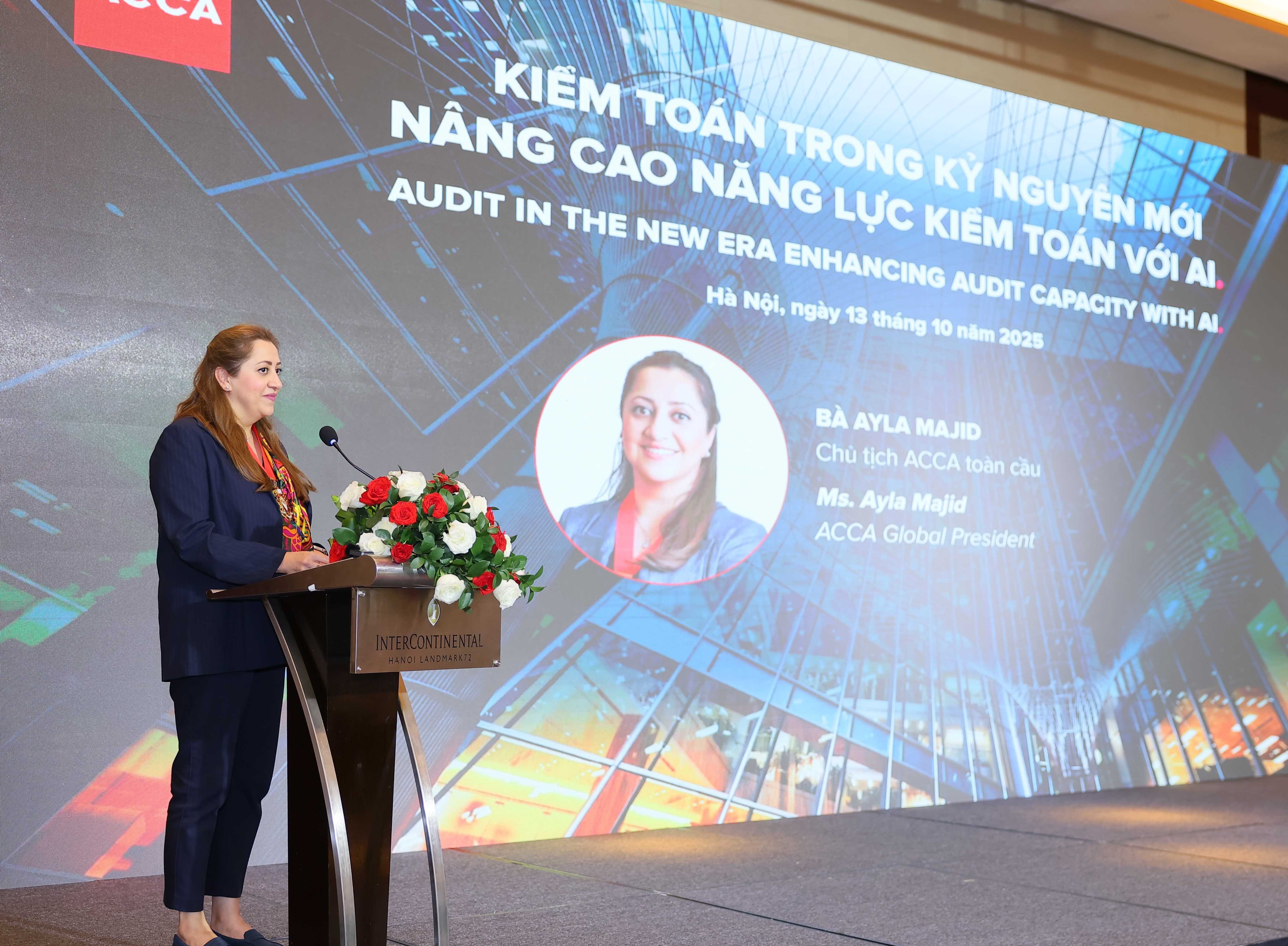 Bà Ayla Majid - Chủ tịch ACCA toàn cầu - cho rằng AI định hình tương lai kiểm toán công Với vai trò là một hội nghề nghiệp toàn cầu, ACCA mong muốn hỗ trợ phát triển lĩnh vực kế toán và kiểm toán tại Việt Nam. Điều này bắt đầu từ việc thúc đẩy tinh thần trách nhiệm nghề nghiệp - nghĩa là đào tạo những kế toán viên chuyên nghiệp có kiến thức vững vàng, đạo đức nghề nghiệp cao và tầm nhìn lãnh đạo, góp phần xây dựng một nền kinh doanh bền vững. Đây cũng là trọng tâm của chương trình đào tạo ACCA mới với mục tiêu chuẩn bị cho các chuyên gia đối phó với những thách thức phức tạp của một thế giới đầy biến động - từ bất ổn kinh tế, biến đổi khí hậu đến xung đột địa chính trị.