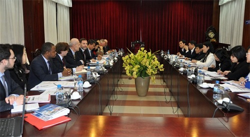 (Khoahockiemtoan.vn) - Sáng 17/03/2016, tại trụ sở Kiểm toán nhà nước (KTNN) - 111 Trần Duy Hưng, Hà Nội, Kiểm toán nhà nước (KTNN) đã có buổi làm việc với đại diện phái đoàn Liên minh châu Âu (EU) tại Việt Nam, Cục hợp tác kinh tế Thụy Sỹ (SECO) và đại diện của Tổ chức Expertise France - đơn vị dự kiến được lựa chọn chủ trì Dự án hợp tác giữa KTNN Việt Nam và EU- SECO