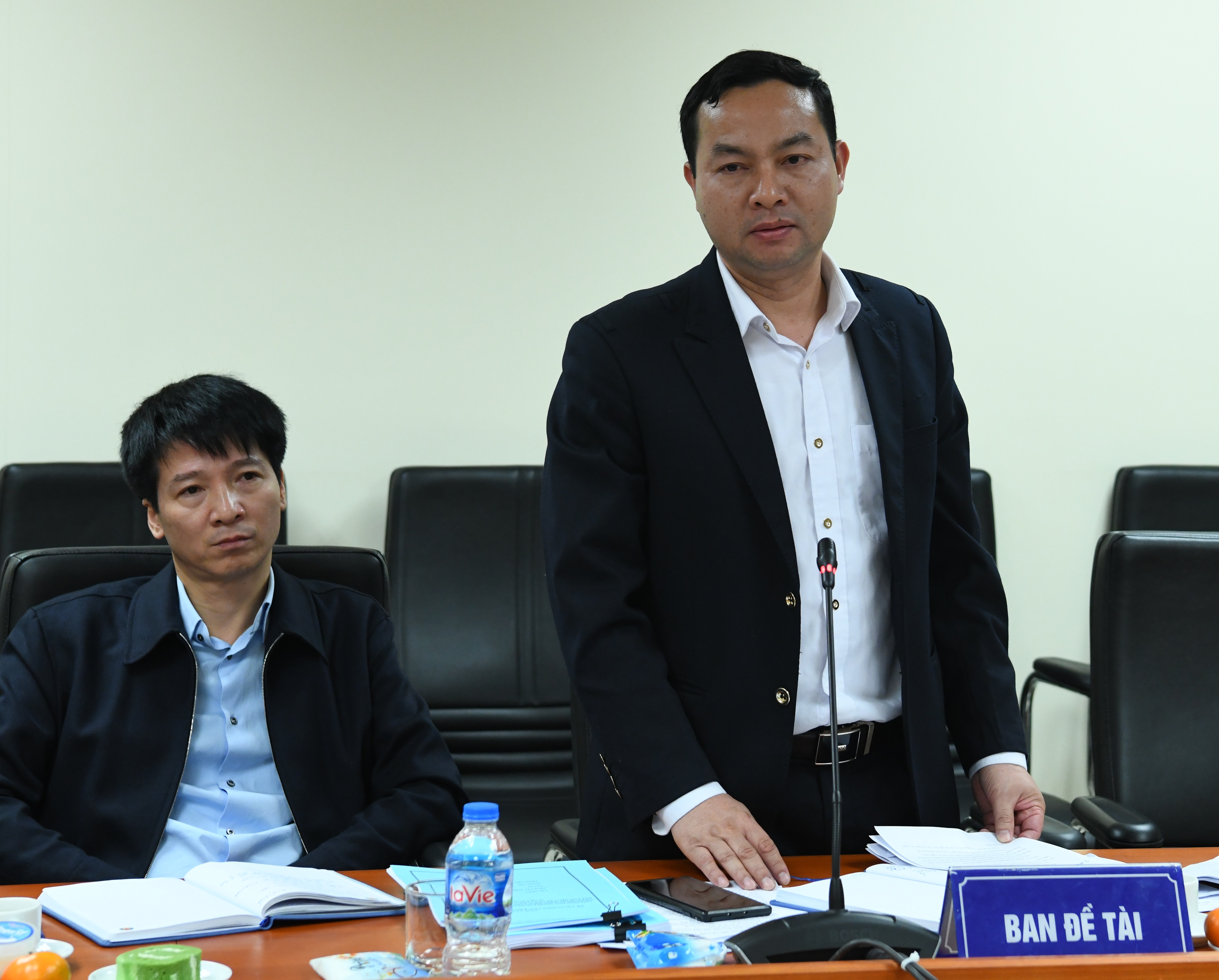 Đại diện Ban đề tài báo cáo kết quả nghiên cứu trước Hội đồng.