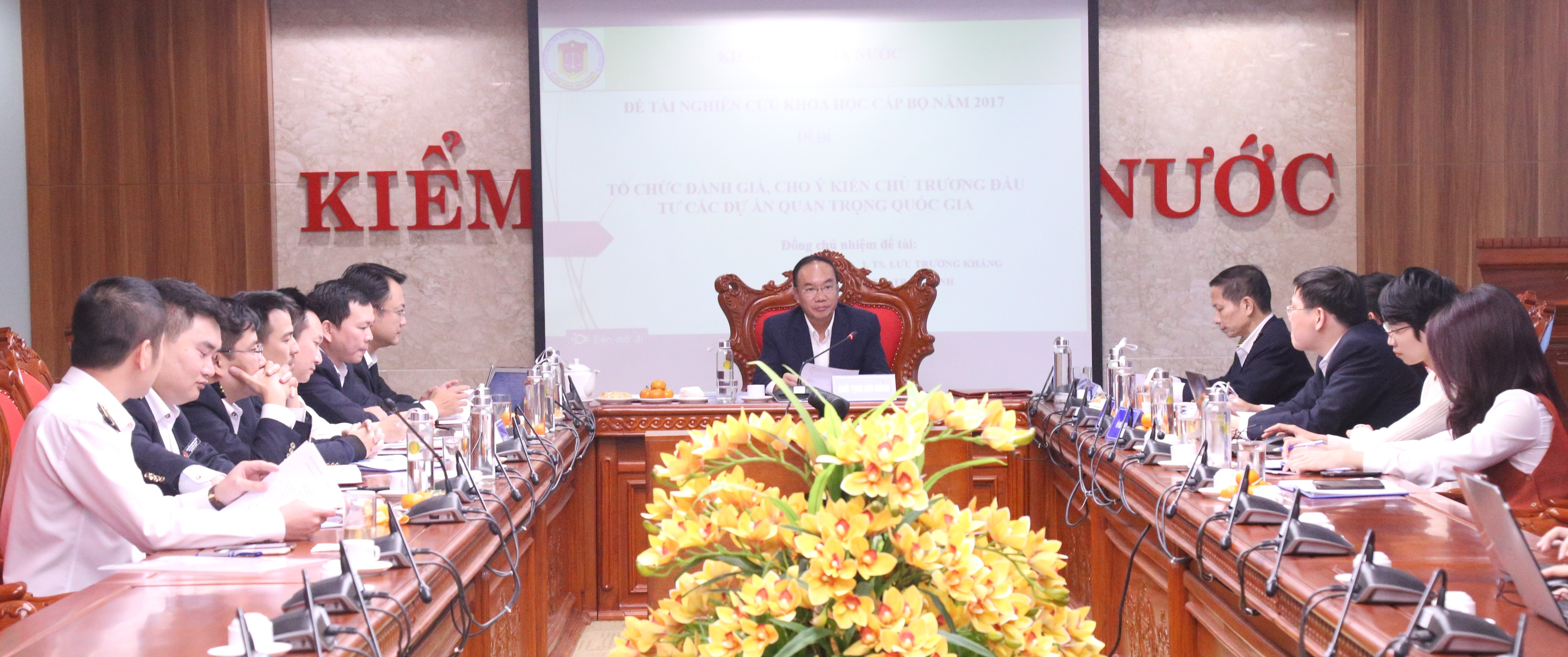 Nhận xét về đề tài, GS.TS Đoàn Xuân Tiên, Chủ tịch Hội đồng đánh giá cao ý nghĩa thực tiễn của đề tài và đánh giá đây là đề tài hay, được thực hiện theo đặt hàng của Lãnh đạo KTNN. Hội đồng yêu cầu Ban đề tài tiếp thu tối đa ý kiến của các thành viên Hội đồng để hoàn thiện đề tài. Trình bày thực trạng các cơ quan chức năng trình và phê duyệt chủ trương đầu tư các dự án quan trọng quốc gia; thực trạng cho ý kiến của Kiểm toán nhà nước để Quốc hội phê duyệt chủ tương đầu tư các dự án quan trọng quốc gia. Từ đó chỉ ra được và phân tích rõ các nguyên nhân của hạn chế và đề xuất các giải pháp phù hợp và giải quyết được các hạn chế.