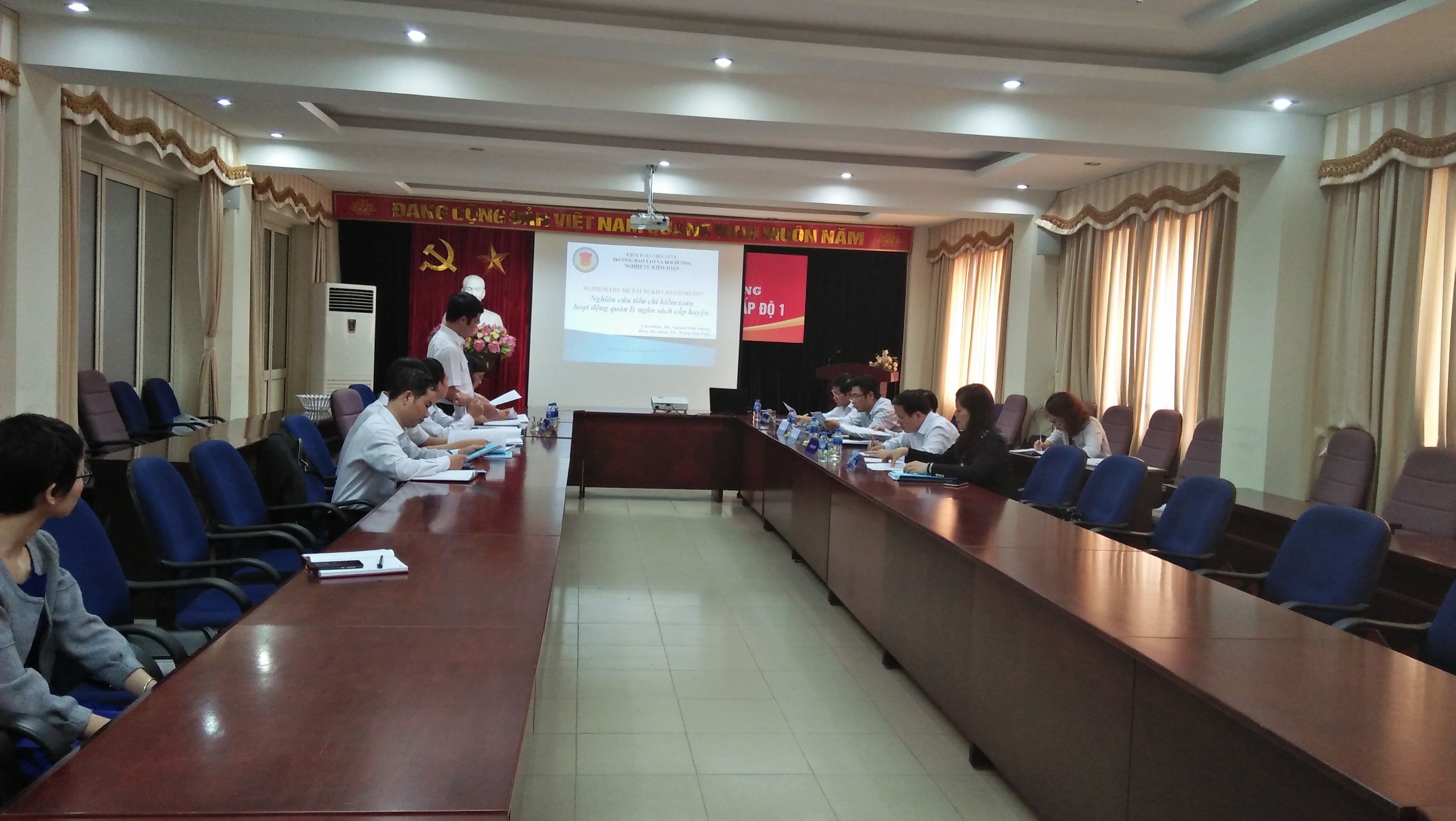 (khoahockiemtoan.vn) - Ngày 23/3/2018, tại Trường Đào tạo và Bồi dưỡng nghiệp vụ kiểm toán, Hội đồng khoa học KTNN đã tổ chức nghiệm thu đề tài nghiên cứu khoa học cấp Cơ sở: “Nghiên cứu tiêu chí kiểm toán hoạt động kiểm toán ngân sách cấp huyện” do Ths. Nguyễn Minh Dương và Ths. Hoàng Anh Tùng làm đồng chủ nhiệm. Chủ tịch Hội đồng nghiệm thu là TS. Lê Đình Thăng - Giám đốc Trường Đào tạo và Bồi dưỡng nghiệp vụ kiểm toán. Tham dự buổi nghiệm thu có đầy đủ các thành viên Hội đồng nghiệm thu và thành viên của Ban đề tài.