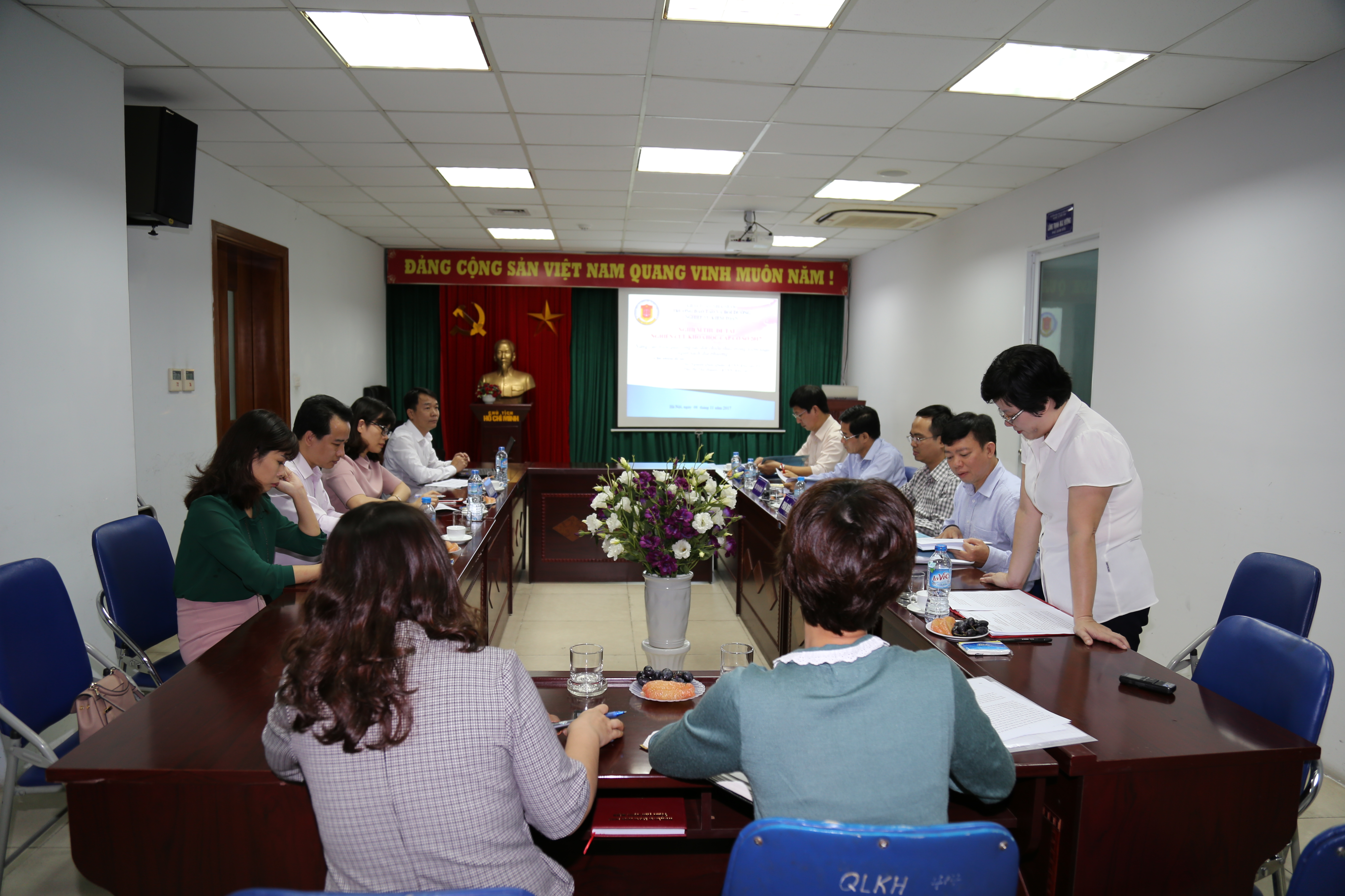 (khoahockiemtoan.vn) - Ngày 08/11/2017, tại Trường Đào tạo và Bồi dưỡng nghiệp vụ kiểm toán, Hội đồng khoa học KTNN đã tổ chức nghiệm thu đề tài nghiên cứu khoa học cấp Cơ sở: “Nâng cao hiệu quả công tác đối chiếu thuế trong kiểm toán ngân sách địa phương” do Ths. Nguyễn Quốc Tuấn và Ths. Đỗ Thu Huyền làm đồng chủ nhiệm. Chủ tịch Hội đồng nghiệm thu là TS. Lê Đình Thăng – Giám đốc Trường. Tham dự buổi nghiệm thu có đầy đủ các thành viên Hội đồng nghiệm thu và các thành viên của Ban đề tài.