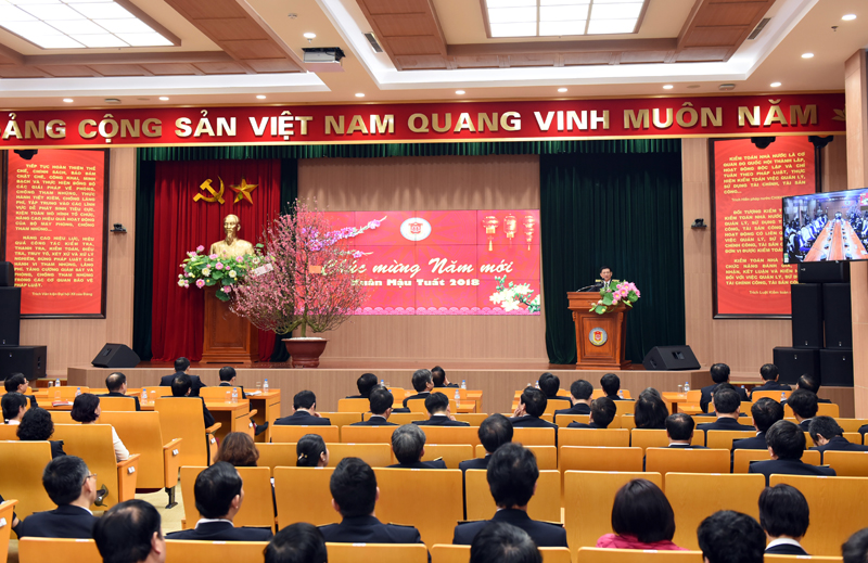 Tại buổi gặp mặt, thay mặt Ban cán sự đảng, Đảng ủy, Lãnh đạo KTNN, Tổng Kiểm toán nhà nước Hồ Đức Phớc đã gửi lời chúc Tết tới cán bộ, công chức, viên chức, người lao động trong toàn Ngành. Biểu dương những cố gắng, nỗ lực, hoàn thành xuất sắc nhiệm vụ của toàn Ngành trong năm 2017. Tổng Kiểm toán nhà nước tin tưởng rằng với sự đoàn kết, nỗ lực của toàn Ngành, cùng với sự ủng hộ của các cấp, các ngành, KTNN sẽ hoàn thành xuất sắc nhiệm vụ đã để ra trong năm 2018.