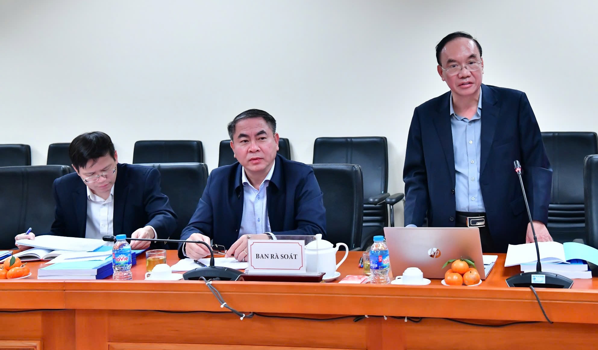 GS.TS Đoàn Xuân Tiên, Trưởng ban rà soát tài liệu, Phó Tổng Kiểm toán nhà nước Trần Minh Khương, Thành viên ban rà soát cùng các thành viên ban rà soát và hội đồng thẩm định cùng tham dự cuộc họp.