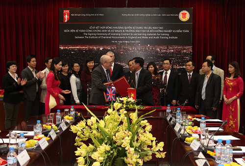 Nằm trong khuôn khổ hợp tác song phương giữa Trường Đào tạo và Bồi dưỡng nghiệp vụ kiểm toán (Trường) nói riêng và Kiểm toán nhà nước (KTNN) nói chung với Viện Kế toán công chứng Anh và xứ Wales (ICAEW), sáng 8/3/2016 Phó Tổng giám đốc toàn cầu ICAEW Mark Protherough và ông Lê Đình Thăng, Giám đốc Trường đã ký hợp đồng nhượng quyền sử dụng tài liệu đào tạo giữa hai bên.