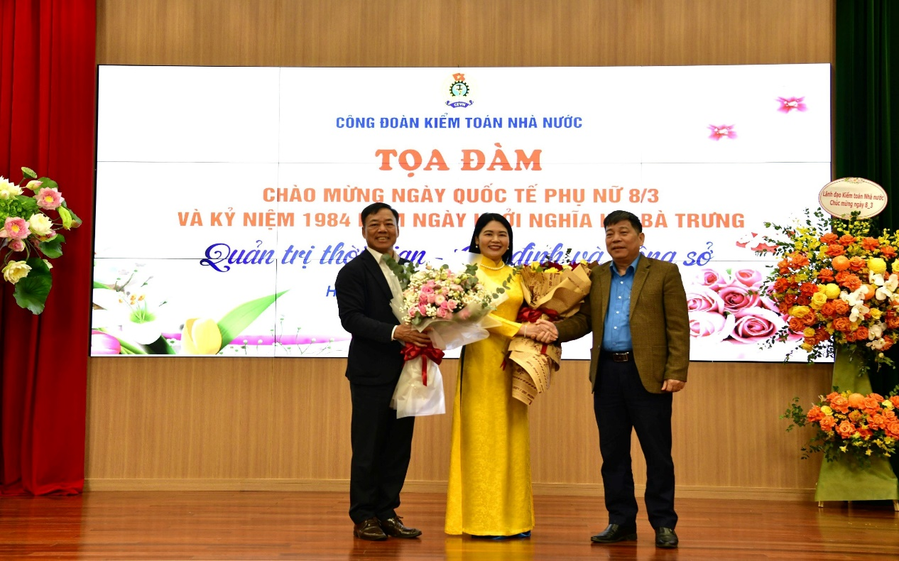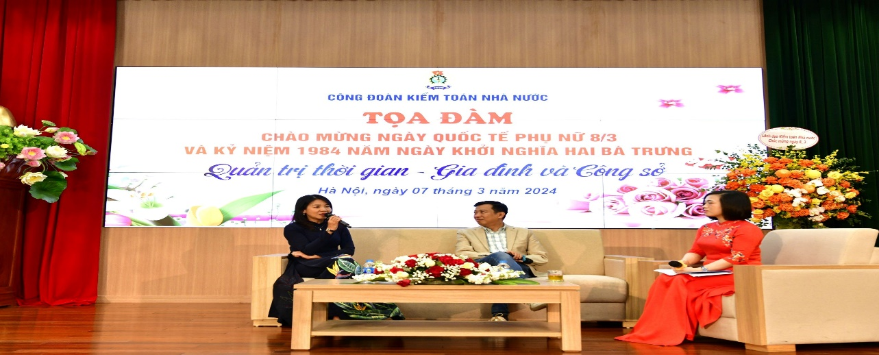 (khoahockiemtoan.vn) - Ngày 07/03, tại trụ sở Kiểm toán nhà nước (KTNN), Công đoàn KTNN tổ chức Tọa đàm chào mừng ngày Quốc tế Phụ nữ 8/3 và kỷ niệm 1984 năm ngày Khởi nghĩa Hai Bà Trưng với chủ đề “Quản trị thời gian: Gia đình và Công sở”, dưới sự chủ trì của Ủy viên Ban cán sự Đảng, Trưởng Ban Dân vận Đảng ủy, Phó Tổng Kiểm toán nhà nước Hà Thị Mỹ Dung.