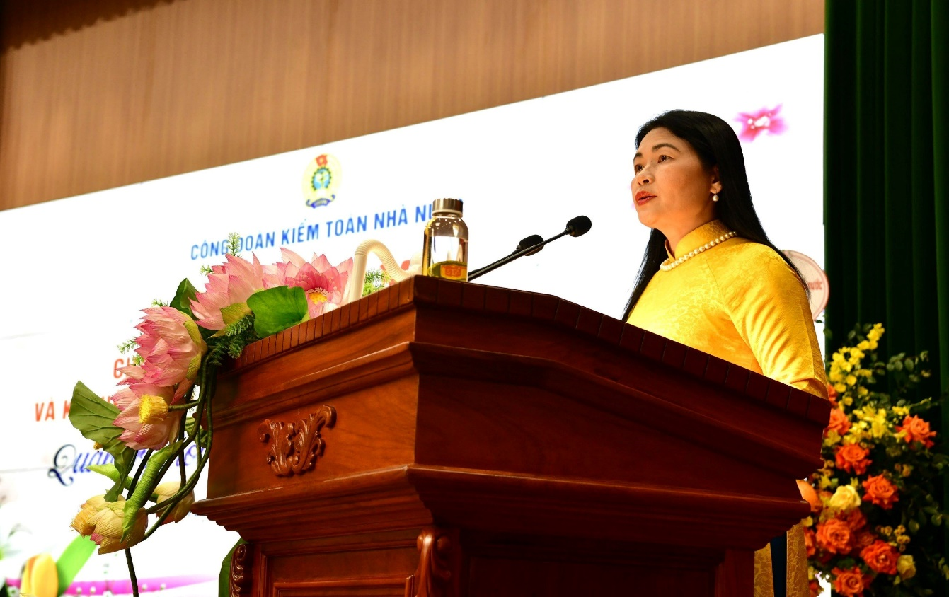 “Thay mặt Ban cán sự Đảng, Đảng ủy và lãnh đạo KTNN, tôi nhiệt liệt biểu dương những nỗ lực vượt bậc, những đóng góp tích cực của tập thể nữ công chức, viên chức, người lao động KTNN đã thực hiện tốt các chức năng theo đúng phân công nhiệm vụ của từng đơn vị; đồng thời có những đề xuất, kiến nghị những chủ trương, chính sách, giải pháp giúp tổ chức chỉ đạo, điều hành các hoạt động chung của KTNN một cách sát thực, hiệu quả” - Phó Tổng Kiểm toán nhà nước Hà Thị Mỹ Dung nhấn mạnh.
