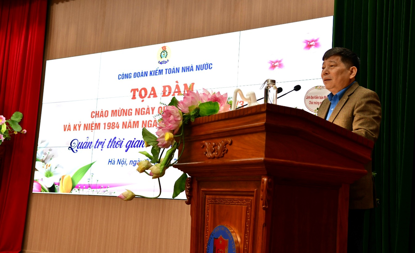 “Tọa đàm là dịp để các đại biểu trao đổi, thảo luận về những góc nhìn đa chiều để có thể quản trị giỏi về thời gian, cân bằng, hài hòa giữa giải quyết công việc gia đình - công sở, nuôi dạy con khôn lớn và ngày càng có cuộc sống tươi đẹp hơn” - Chủ tịch Công đoàn KTNN Trần Kim Lộc nhấn mạnh.