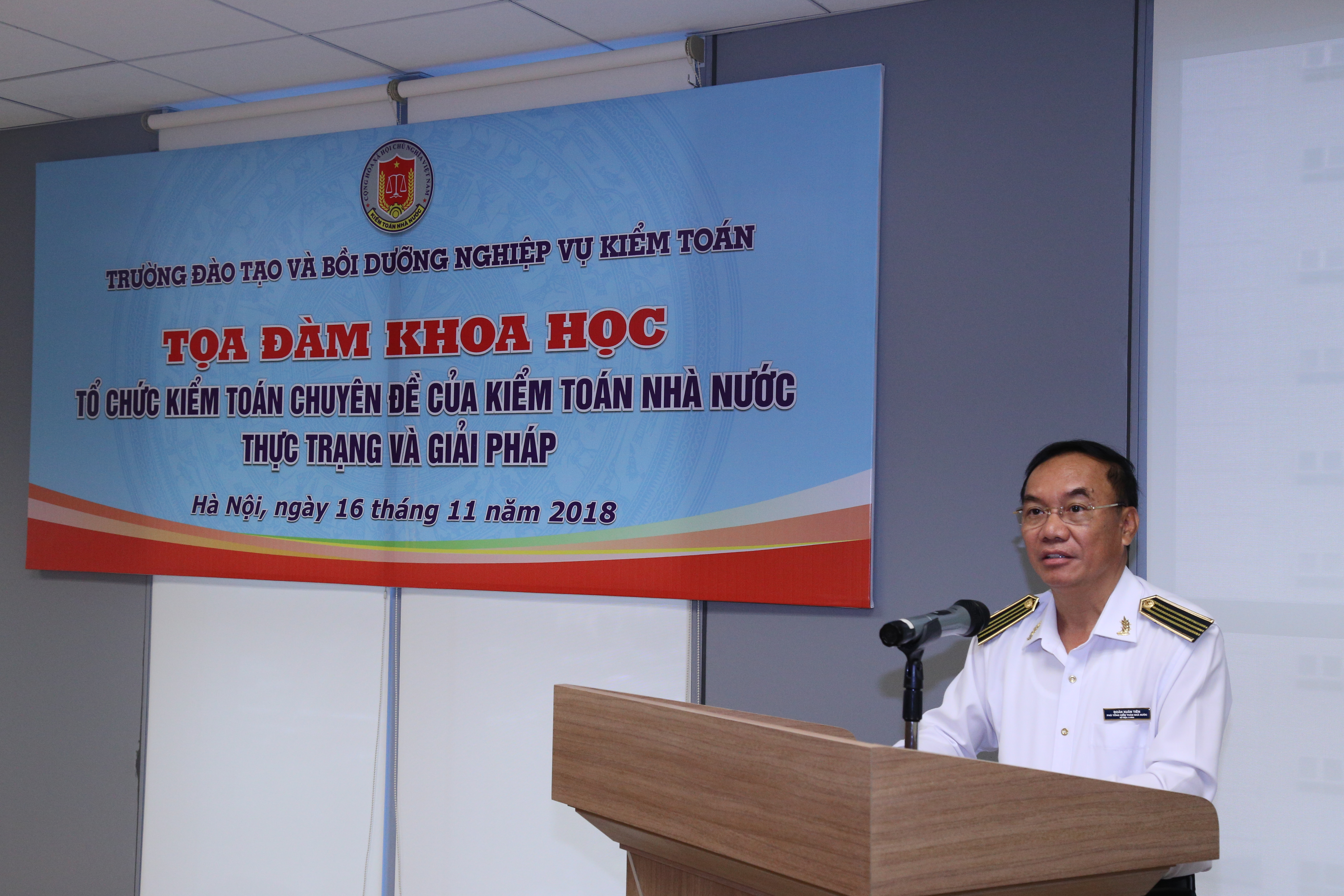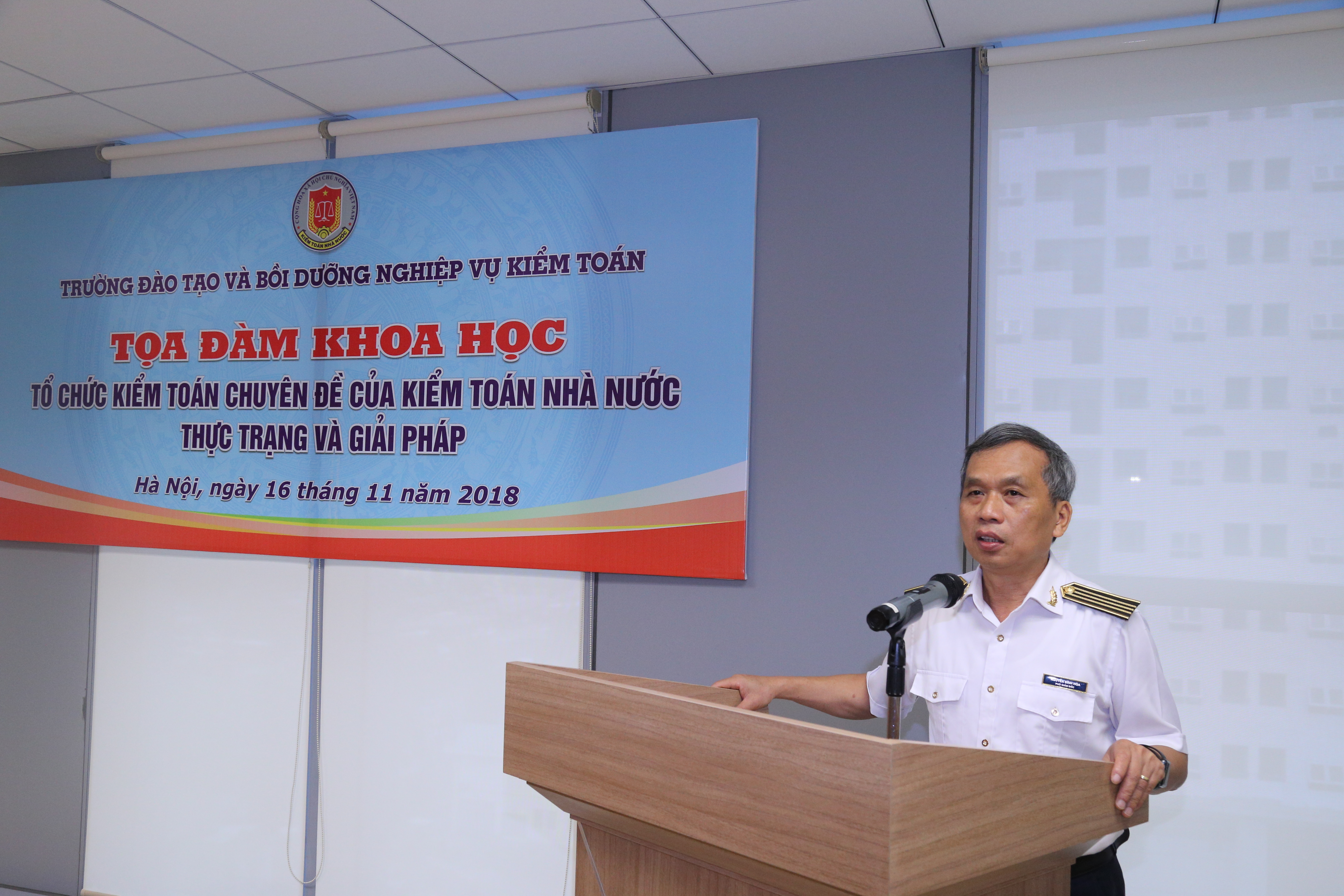 Phát biểu bế mạc buổi Tọa đàm, PGS.TS Nguyễn Đình Hòa .Q Giám đốc Trường cho biết: Tham gia Hội thảo có trên 70 đại biểu đến từ Kiểm toán nhà nước chuyên ngành, khu vực, các đơn vị tham mưu, sự nghiệp; hầu hết các đồng chí đã từng tham gia và có nhiều kinh nghiệm trong việc tổ chức thực hiện các cuộc kiểm toán chuyên đề. Tọa đàm nhận được 21 bài viết đã được đăng trong Kỷ yếu, 06 bài tham luận và 06 ý kiến trao đổi, phát biểu thảo luận trực tiếp tại hội trường hết sức sôi nổi. Các bài viết đăng trong kỷ yếu, các bài tham luận đã trình bày cũng như ý kiến trao đổi trực tiếp tại tọa đàm đã đề cập tương đối toàn diện từ giác độ lý luận cũng như thực tiễn của vấn đề. Hầu hết các ý kiến phát biểu đều khẳng định sự cần thiết phải tổ chức và tìm kiếm giải pháp để nâng cao chất lượng các cuộc kiểm toán chuyên đề. Các giải pháp nhận được sự đồng tình của nhiều đại biểu và có ý nghĩa quan trọng góp phần nâng cao chất lượng kiểm toán chuyên đề của KTNN, nhằm: