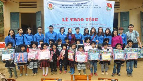 (khoahockiemtoan.vn) - Nhân kỷ niệm 85 năm ngày thành lập Đoàn Thanh niên Cộng sản Hồ Chí Minh (26/3/1931 – 26/3/2016), được sự đồng ý của cấp ủy, lãnh đạo 3 đơn vị, ngày 23/3/2016, 3 Chi đoàn thanh niên: Trung tâm Tin học, Trường Đào tạo và Bồi dưỡng nghiệp vụ kiểm toán và Báo Kiểm toán đã tổ chức Lễ trao Tủ sách vùng cao và dụng cụ hỗ trợ giảng dạy cho điểm trường xóm Sưng, thuộc Trường Tiểu học Cao Sơn B, huyện Đà Bắc, tỉnh Hòa Bình.