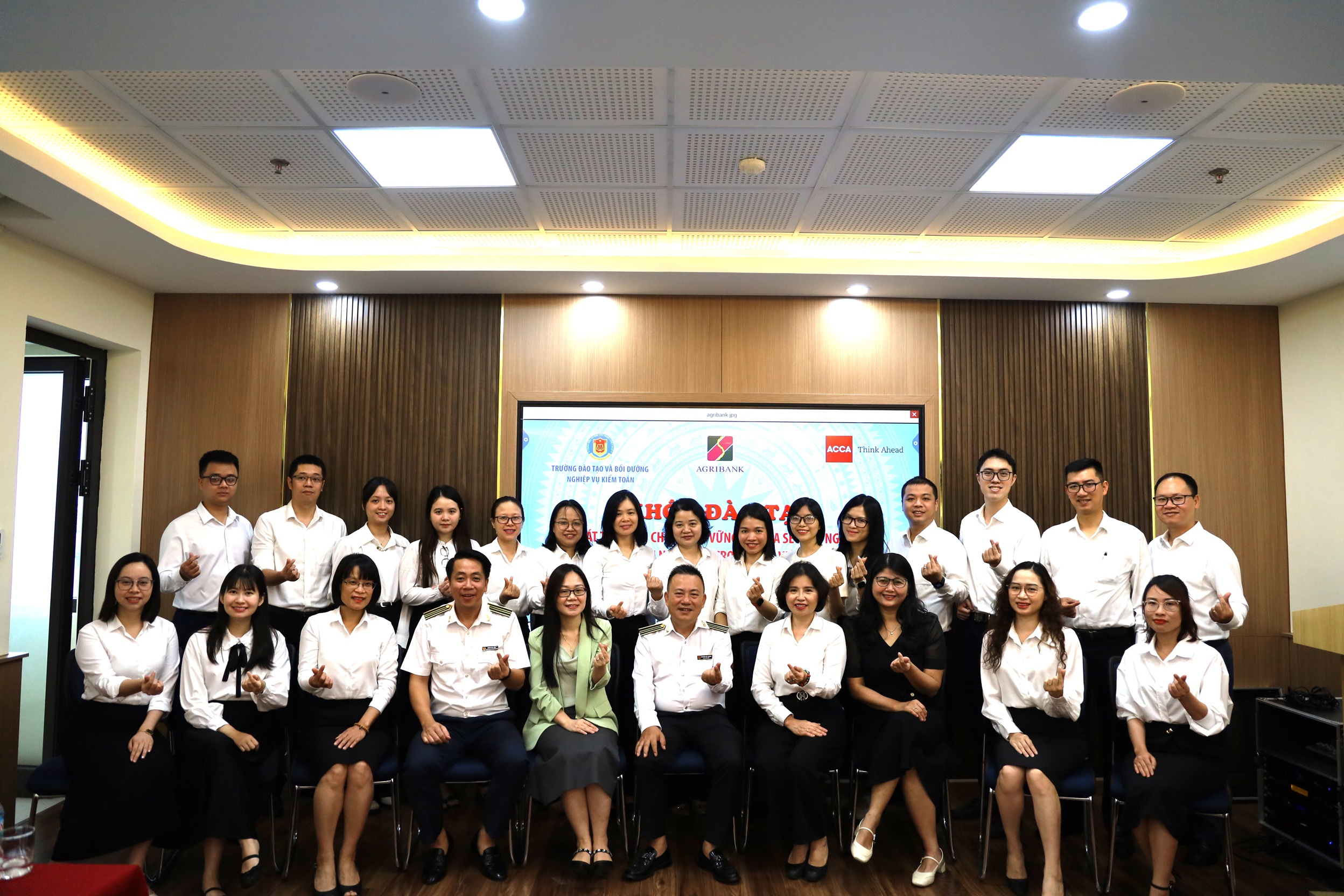 (khoahockiemtoan.vn) - Sáng ngày 26/5/2025, tại  số 111 Trần Duy Hưng, Cầu Giấy, Tp Hà Nội, Trường ĐT&BD nghiệp vụ kiểm toán(Trường) tổ chức khai giảng lớp tập huấn “Chương trình Phát triển bền vững và Chia sẻ kinh nghiệm của Kiểm toán nhà nước” cho các cán bộ Ngân hàng Nông nghiệp và Phát triển nông thôn. Tới dự khai giảng lớp tập huấn có ông Nguyễn Huy Hoàng - Phó Giám đốc Trường;  TS Nguyễn Thị Thu Hà - Bí thư Đảng ủy, Giám đốc Trường Đào tạo cán bộ Agribank, Bà Nguyễn Phương Hằng - Thành viên Ủy ban hội viên ACCA tại Việt Nam cùng các học viên của lớp học. Đây là lớp học thứ hai do Trường  ĐT&BD nghiệp vụ kiểm toán tổ chức triển khai cho cán bộ Ngân hàng Agribank theo chương trình hợp tác với Hiệp hội Kế toán Công chứng Anh Quốc (ACCA).