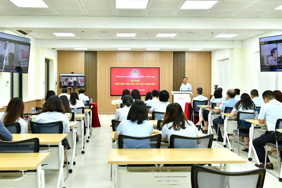 (khoahockiemtoan.vn) - Sáng 18/6, Trường Đào tạo và Bồi dưỡng nghiệp vụ kiểm toán (Trường) đã tổ chức Hội nghị điển hình tiên tiến lần thứ V (2025-2030) nhằm tổng kết phong trào thi đua, khen thưởng giai đoạn 2020-2025; đề ra phương hướng, nhiệm vụ công tác thi đua, khen thưởng giai đoạn 2025-2030, hướng tới Đại hội Thi đua yêu nước của KTNN lần thứ V năm 2025.