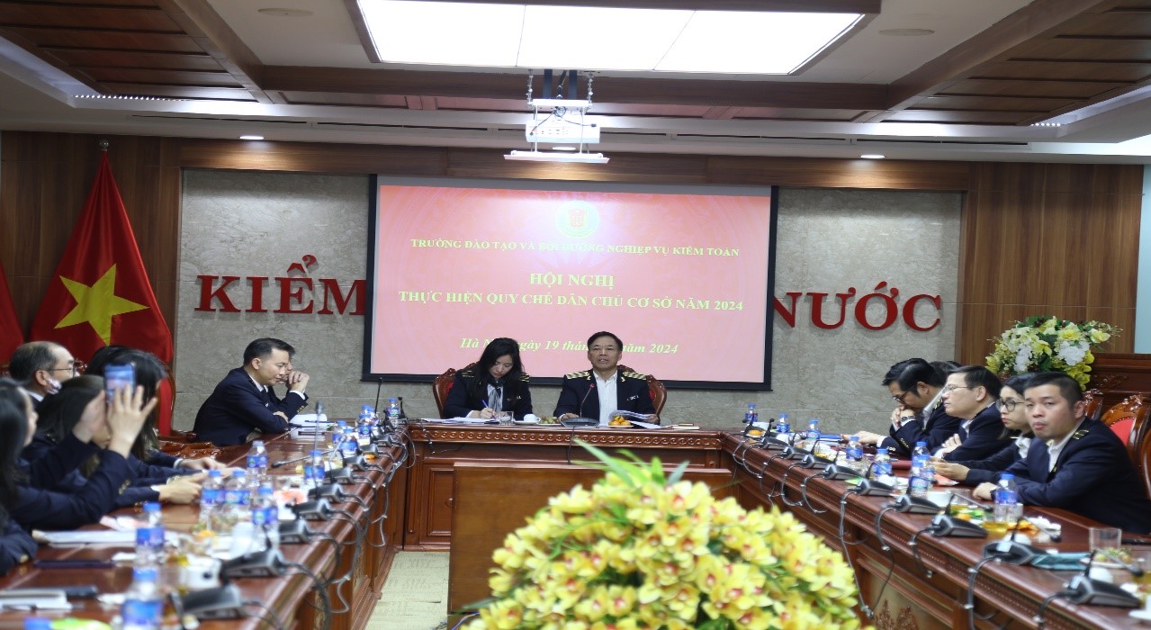 Báo cáo tại Hội nghị, Phó Giám đôc Trường Ngô văn Dũng cho biết: Năm 2024, Trường hoàn thành tổ chức 82 lớp đào tạo (100%) theo kế hoạch đề ra, trong đó có 1 lớp bồi dưỡng cho kiểm toán viên Lào và 1 lớp do chuyên gia Trung Quốc giảng dạy; 26 lớp bồi dưỡng ngạch và kỹ năng; 6 lớp tập huấn đề cương kiểm toán và tọa đàm chia sẻ kinh nghiệm chuyên môn; 24 lớp bồi dưỡng kiến thức an ninh quốc phòng, pháp luật, phòng chống tham nhũng, nắm bắt tâm lý; 24 lớp bồi dưỡng kiến thức tin học với hơn 3.900 lượt học viên.