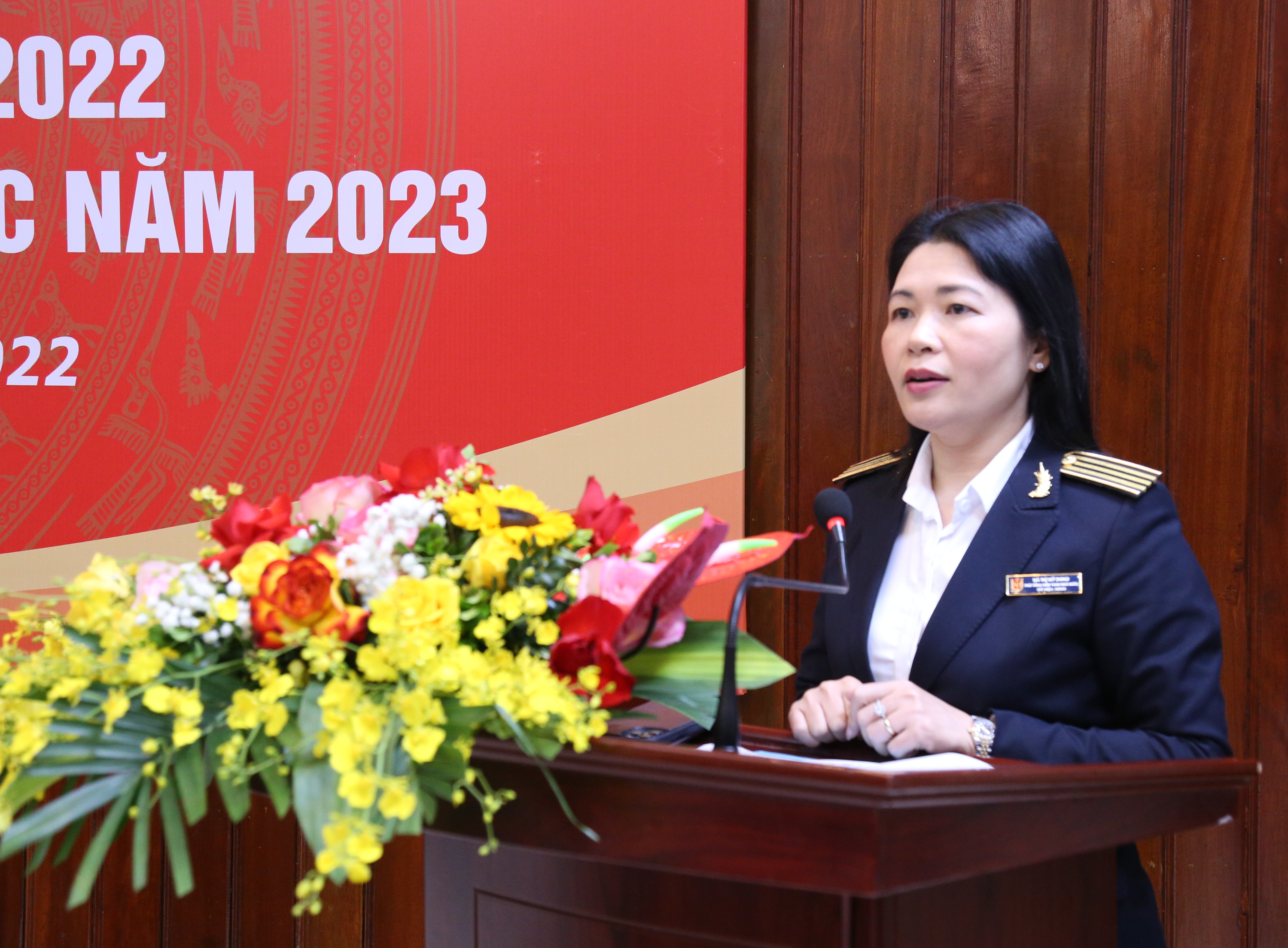 Toàn cảnh Hội nghị Báo cáo kết quả công tác năm 2022, Phó Giám đốc Trường Hà Minh Tuấn cho biết: Đến hết tháng 11/2022, Trường tổ chức thực hiện được 35 lớp đào tạo bồi dưỡng chuyên môn , 07 lớp hướng dẫn sử dụng phần mềm của KTNN và 03 lớp bồi dưỡng kỹ năng sử dụng CNTT, 05 tọa đàm trao đổi kiến thức, 03 lớp tập huấn đề cương kiểm toán, phối hợp với Vụ Hợp tác quốc tế tổ chức 01 Khóa đào tạo chung về kiểm toán hoạt động đối với DNNN trong khuôn khổ hợp tác ba bên giữa KTNN Campuchia – Lào – Việt Nam và 01 lớp cho công chức kiểm toán viên Lào với số lượng trên 2.600 lượt học viên.