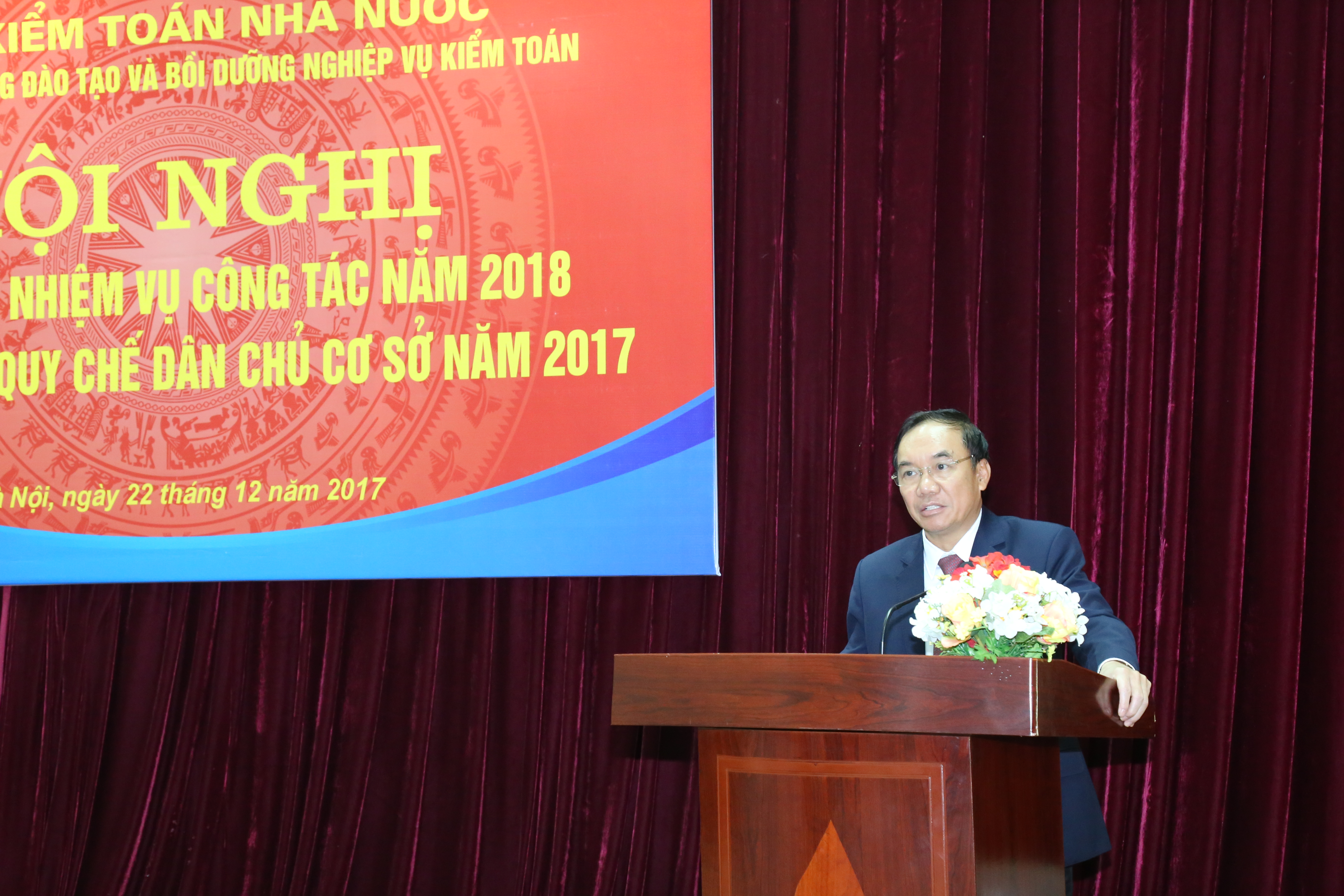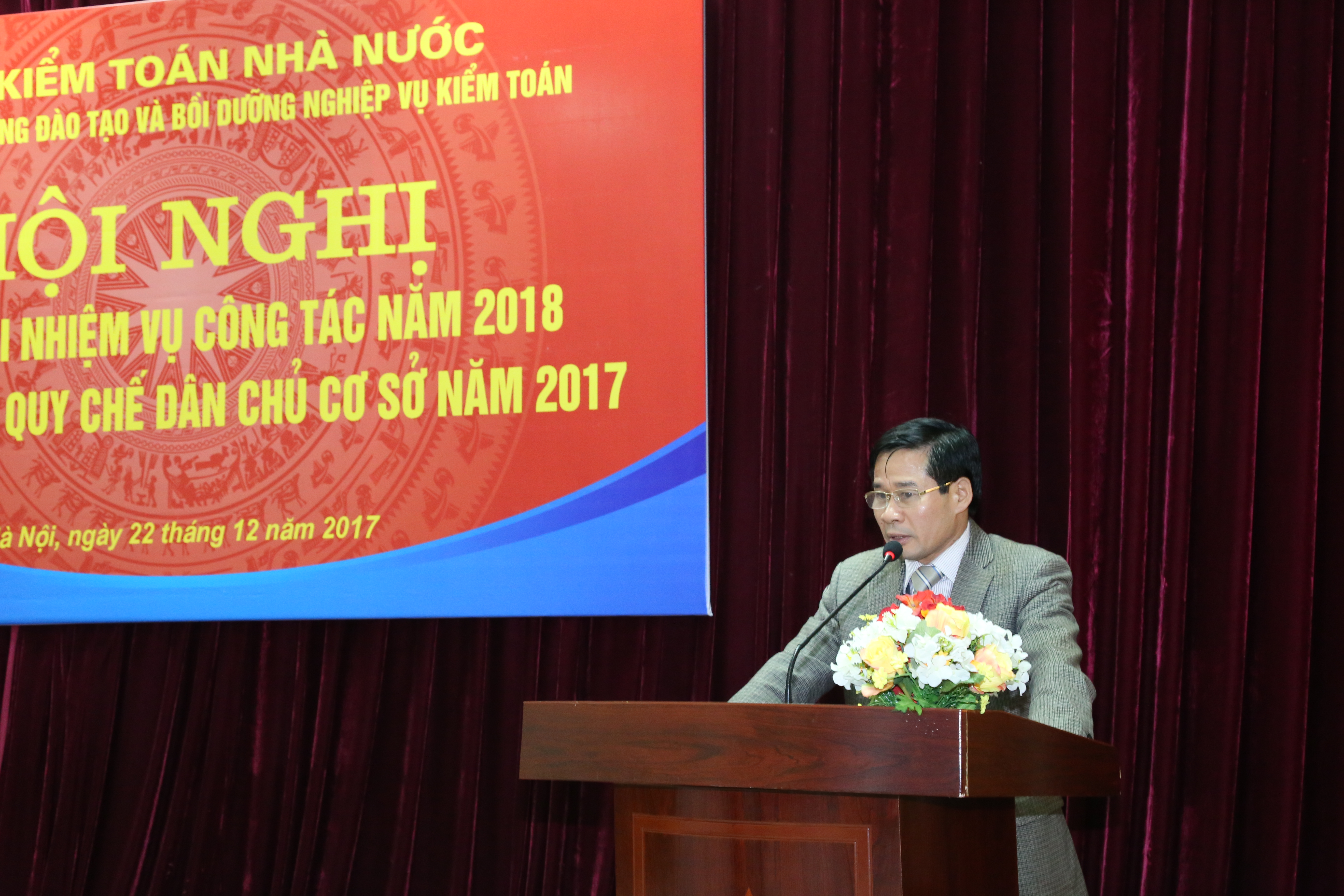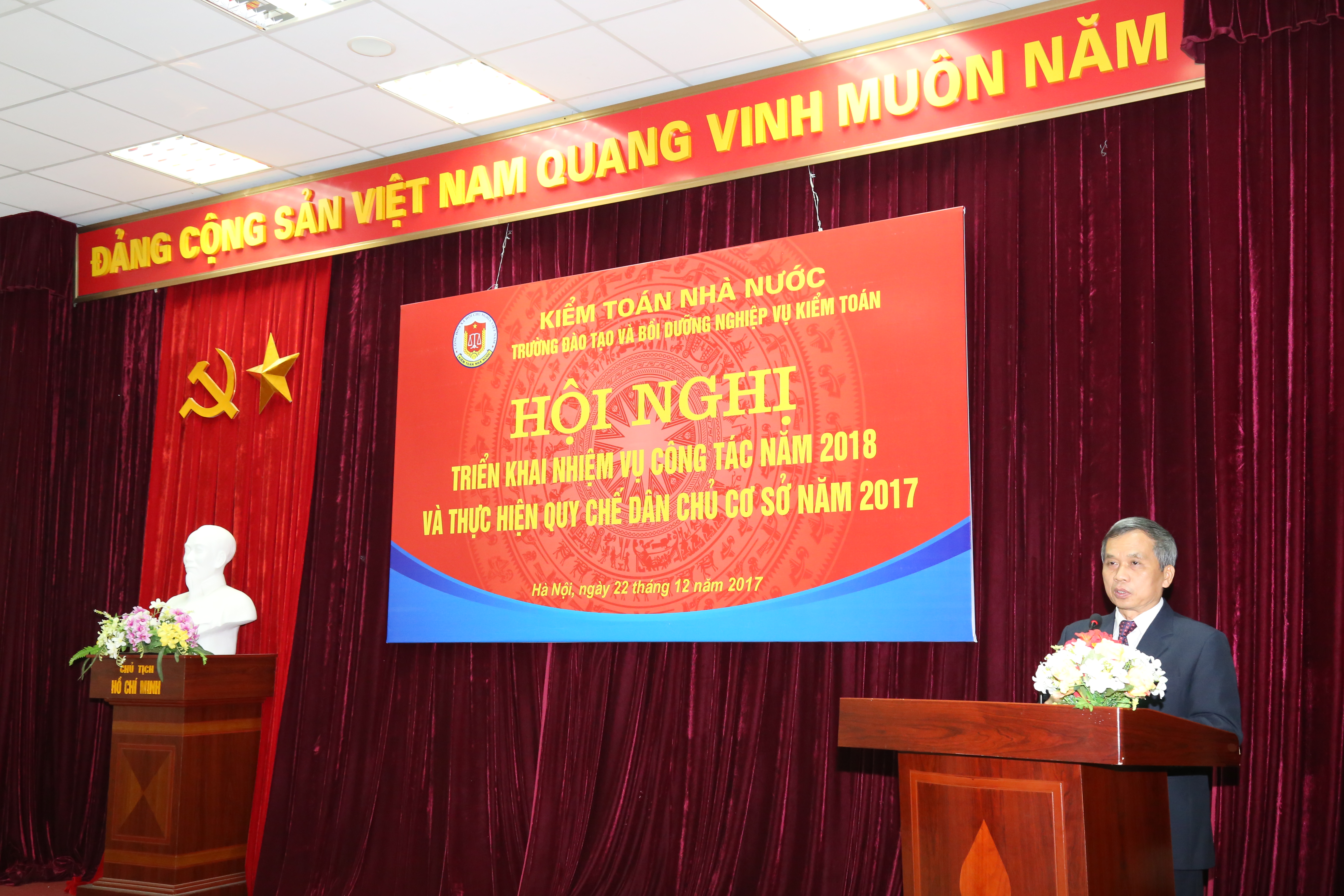 Phát biểu kết luận tại buổi Tổng kết, đồng chí Đoàn Xuân Tiên - Phó Tổng KTNN đã biểu dương những kết quả mà Trường đã đặt được trong năm 2017, đồng chí Phó Tổng KTNN cũng nhấn mạnh một số nội dung mà Trường cần tập trung quan tâm, thực hiện trong năm 2018 như: Tiếp tục nâng cao công tác giáo dục đào tạo, bồi dưỡng, hoàn thành các chương trình, tài liệu, giảng dạy; đổi mới công tác tuyển sinh, kế hoạch đào tạo sao cho hợp lý; xây dựng đội ngũ giảng viên theo các tiêu chuẩn cụ thể; tiếp tục ứng dụng công nghệ thông tin vào công tác giảng dạy, đào tạo. Nâng cao chất lượng công tác khoa học, lựa chọn các đề tài nghiên cứu có giá trị thực tiễn và chất lượng. Tiếp tục thực hiện tốt công tác cải cách hành chính, tinh gọn các hội đồng thẩm định, nghiệm thu các chương trình đào tạo…để nâng cao năng lực đáp ứng các yêu cầu của KTNN về khoa học, đào tạo trong tình hình mới.