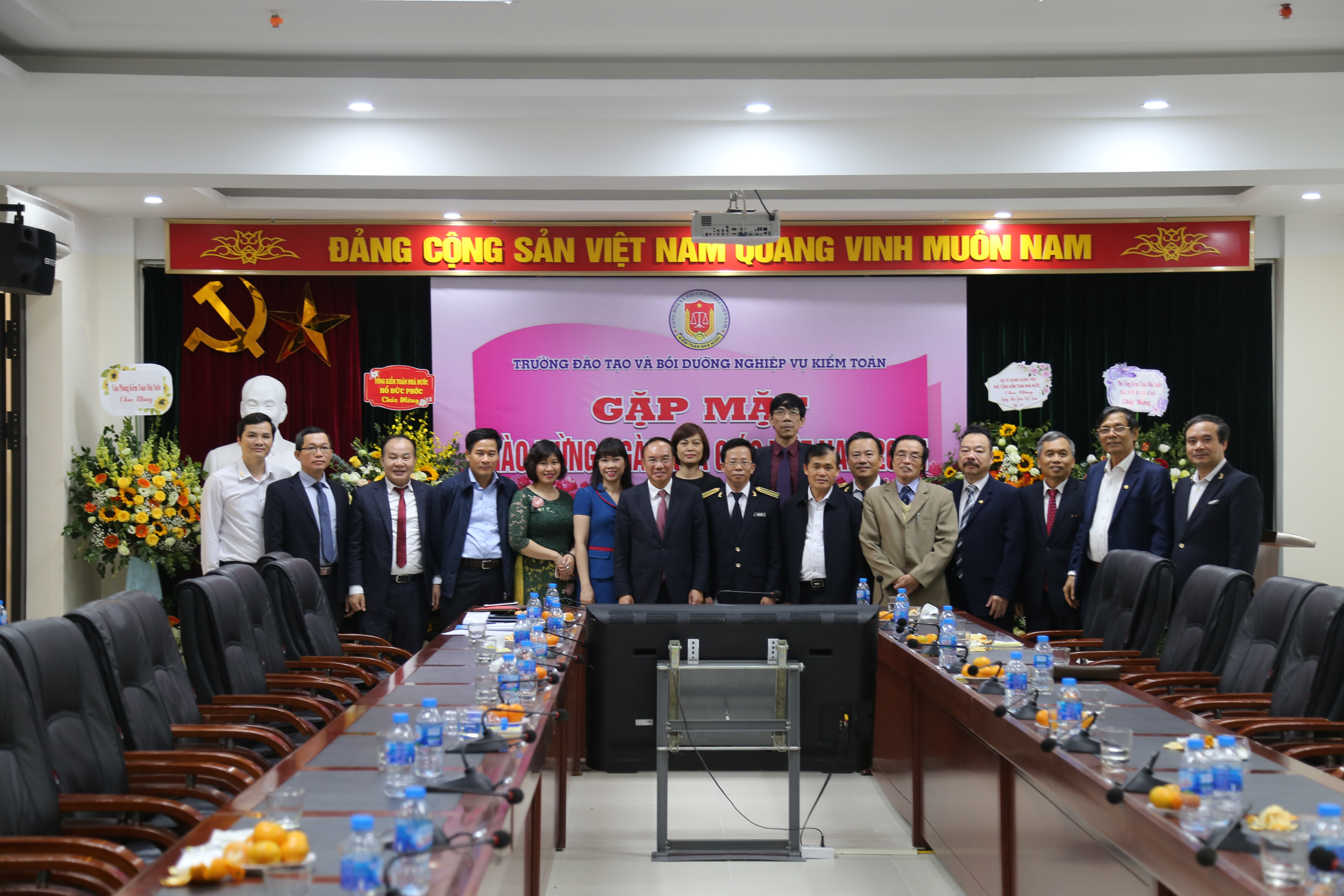 (khoahockiemtoan.vn) - Sáng ngày, 20/11/2019, Trường ĐT&BD nghiệp vụ kiểm toán tổ chức kỷ niệm Ngày nhà giáo Việt Nam 20/11. Đến dự buổi Lễ có GS.TS Đoàn Xuân Tiên, TS.Vũ Văn Họa Phó Tổng KTNN, PGS.TS Đặng Văn Thanh, các đồng chí nguyên là Giám đốc, Phó Giám đốc Trường đã nghỉ hưu, lãnh đạo các đơn vị trực thuộc KTNN, các giảng viên kiêm chức và toàn thể viên chức và người lao động của Trường. Tổng KTNN Hồ Đức Phớc, các Phó Tổng KTNN Nguyễn Quang Thành, Nguyễn Tuấn Anh, Đặng Thế Vinh đã gửi lẵng hoa chúc mừng.