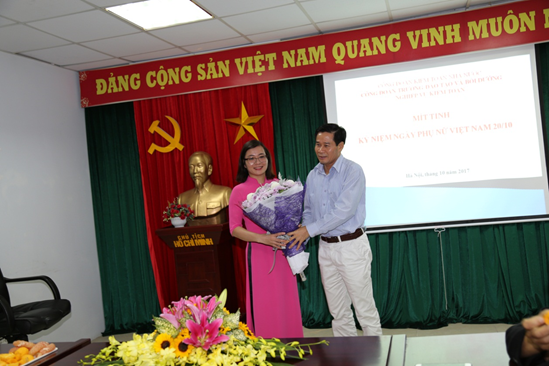 Tại buổi Lễ, TS.Lê Đình Thăng - Giám đốc Trường cũng đã trao bó hoa tươi thắm chúc mừng chị em của Trường nhân ngày  20/10.